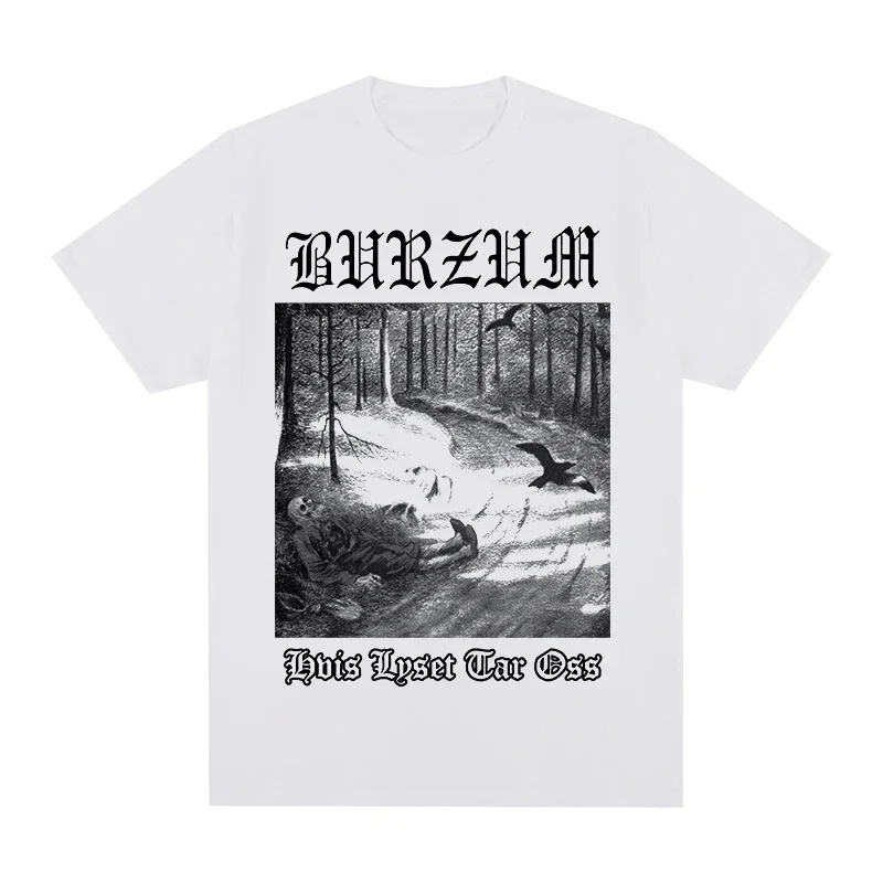 Our Burzum shirt collection combine comfort with dark metal vibes. Featuring minimalist designs inspired by albums like Filosofem and Hvis Lyset Tar Oss, these soft cotton tees are perfect for everyday wear or black metal gatherings.