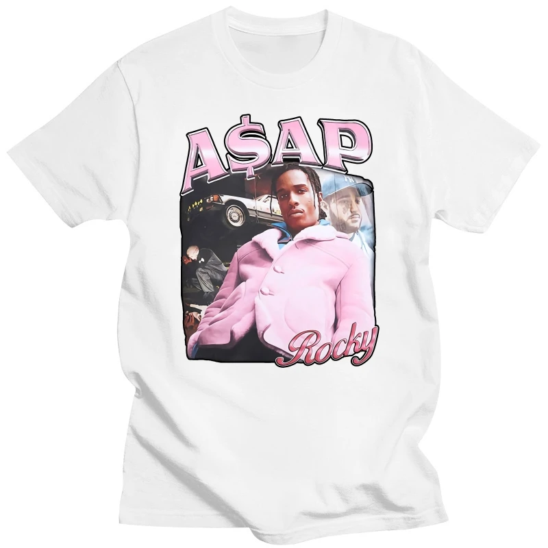 This iconic A$AP Rocky graphic tee features bold pink lettering and classic imagery that captures the essence of hip-hop culture. The black shirt showcases a stunning vintage-inspired design with A$AP Rocky’s name prominently displayed above a cinematic photo montage. Perfect for fans who want to rep their favorite artist in style—this is the kind of piece that makes a statement.
