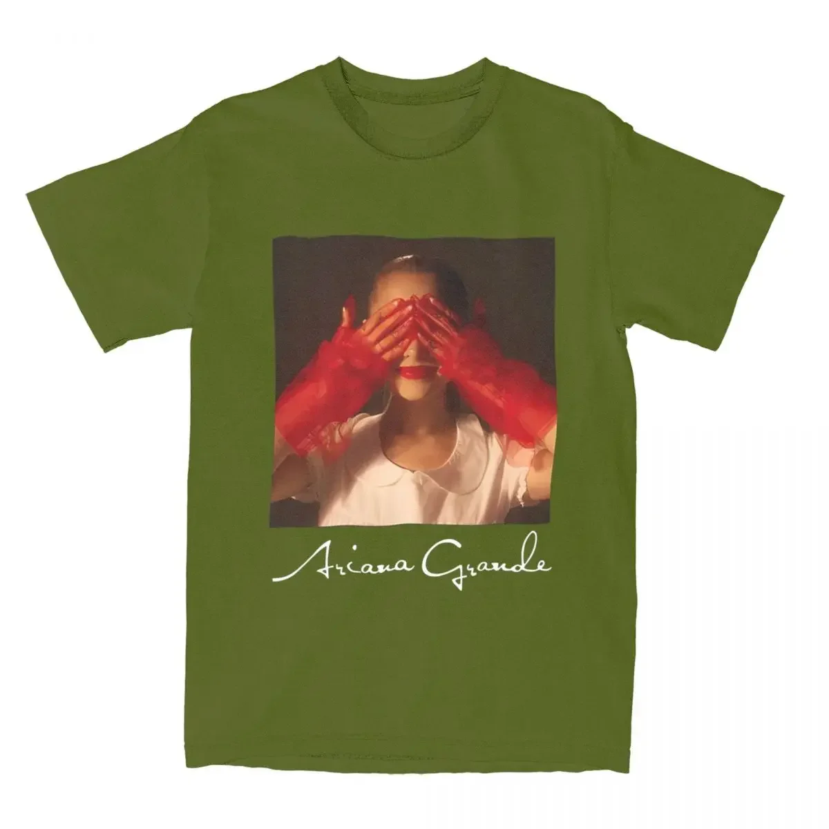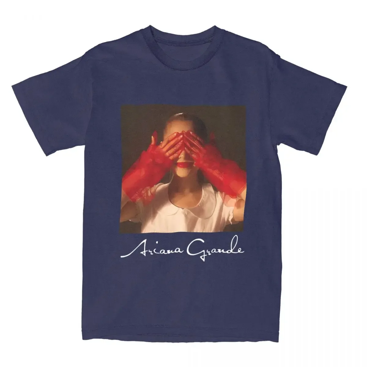 Capture the ethereal energy of Ariana Grande’s Eternal Sunshine era with this stunning black tee. The design features a mesmerizing portrait with glowing golden light and striking crimson red hands creating a powerful visual moment. Ariana’s signature is elegantly displayed below the artwork, making this the perfect piece for devoted fans who want to wear their favorite album’s iconic imagery.