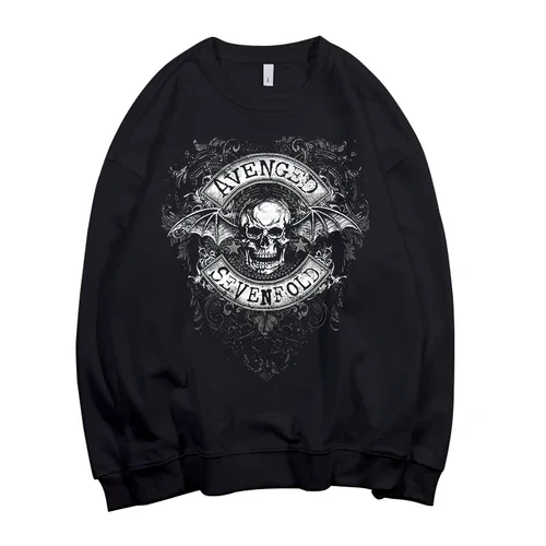 Dominate your wardrobe with this epic Avenged Sevenfold “Hail to the King” sweatshirt featuring the iconic skeletal figure commanding center stage. The bold red and gold artwork blazes across a comfortable black sweatshirt, capturing the dark, regal aesthetic of one of metal’s most legendary albums. This is the perfect piece for devoted A7X fans who want to wear their heavy music pride loud and proud.