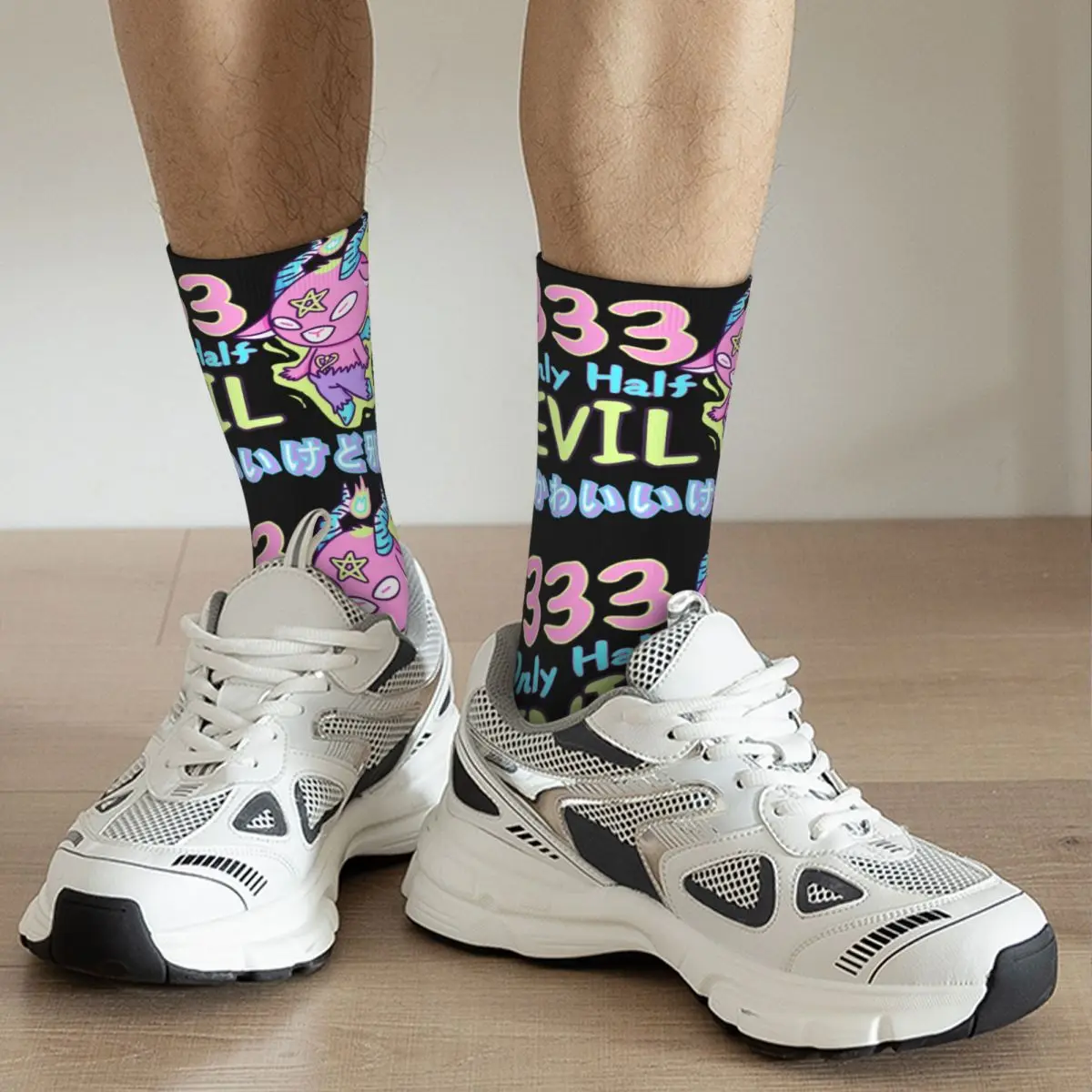 Step into Bladee’s psychedelic world with these 333 Album Song Print Socks that burst with neon energy and otherworldly character designs. The vibrant pink, lime green, and cyan palette creates an eye-catching vibe against the black background, while the repeating angelic figures and celestial motifs perfectly capture the album’s ethereal aesthetic. These socks are a must-have for any Bladee fan who wants to wear their love for the Drain Gang pioneer literally on their feet.