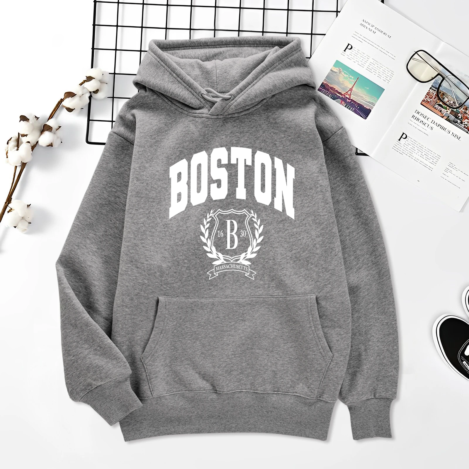 Rock your Boston pride with this classic black hoodie featuring the iconic band name in bold white lettering across the chest. The design includes the emblematic ‘B’ logo framed by laurel wreaths and the Massachusetts state banner, giving it that timeless rock band aesthetic. Perfect for fans who want to rep one of rock’s greatest bands in style and comfort. This is the ultimate wardrobe staple for any Boston devotee.