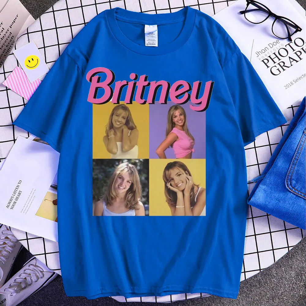 This iconic Britney Spears Young Artist Era shirt is a colorful throwback to the pop princess at her absolute peak! The design features four vibrant photo panels in classic ’90s and early 2000s style—yellow, purple, and more—arranged perfectly beneath that bold pink ‘Britney’ script logo. It’s the ultimate nostalgia piece for anyone who grew up dancing to her greatest hits and following every era of her legendary career.