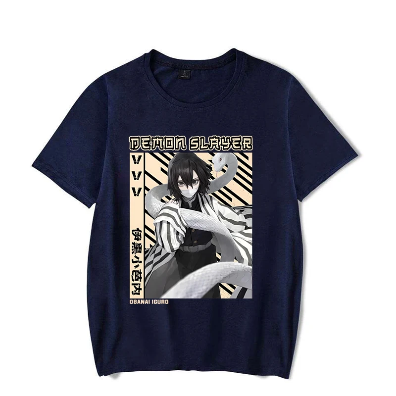 Rock this stunning Demon Slayer Obanai Iguro t-shirt featuring the Love Hashira in his signature white and black tactical gear. The design captures Obanai’s intense gaze and serpentine companion in a striking vintage anime poster style with bold typography and geometric patterns. Perfect for any Demon Slayer fan who appreciates one of the series’ most compelling characters in a sleek, classic black tee.