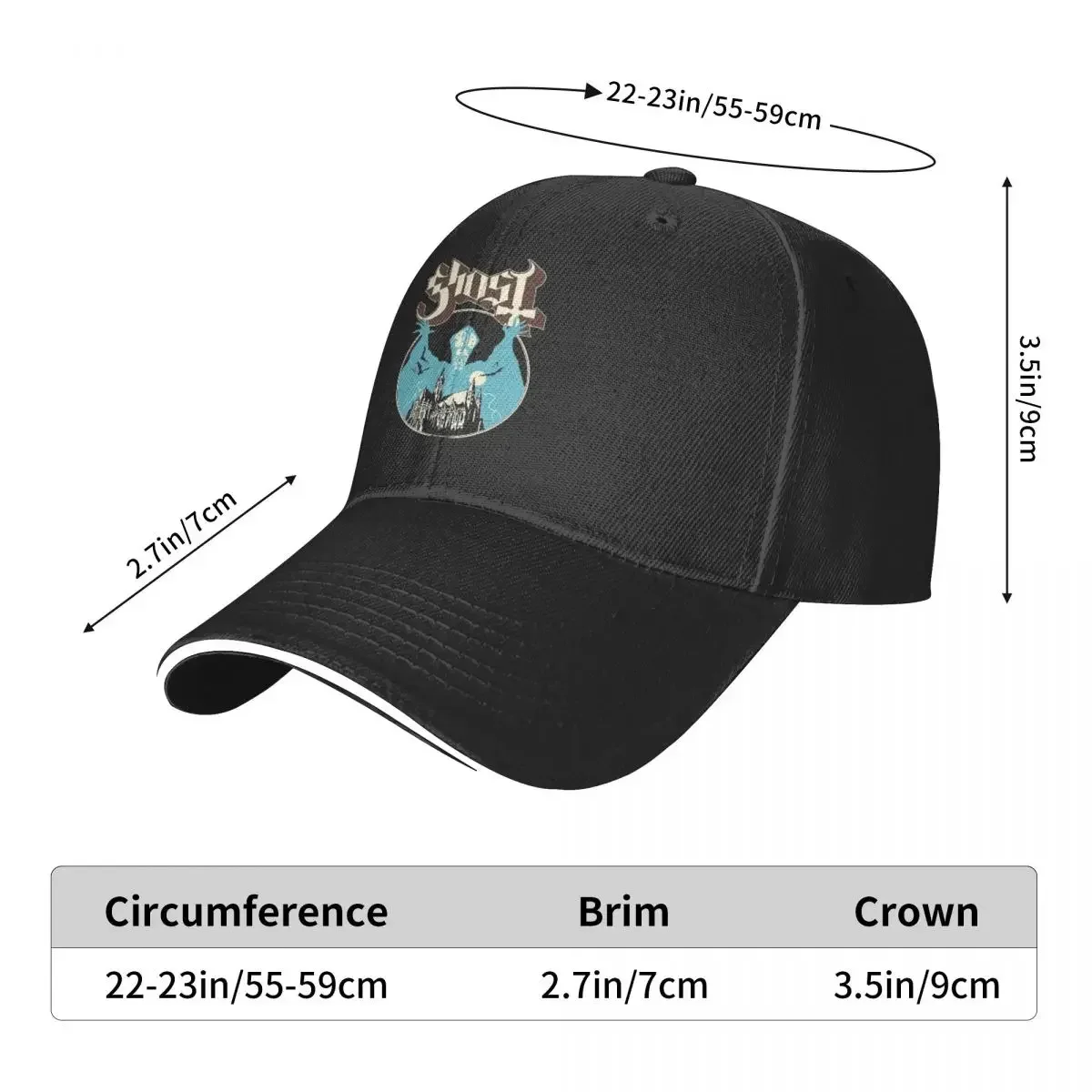 Rock your allegiance to Ghost with this striking black cap featuring the band’s iconic logo and atmospheric artwork. The design showcases the ghostly figure with outstretched wings against a haunting blue circular backdrop, perfectly capturing the theatrical essence of Ghost’s visual identity. This classic cap is an essential piece for any devoted fan looking to display their love for the Swedish metal legends in style.