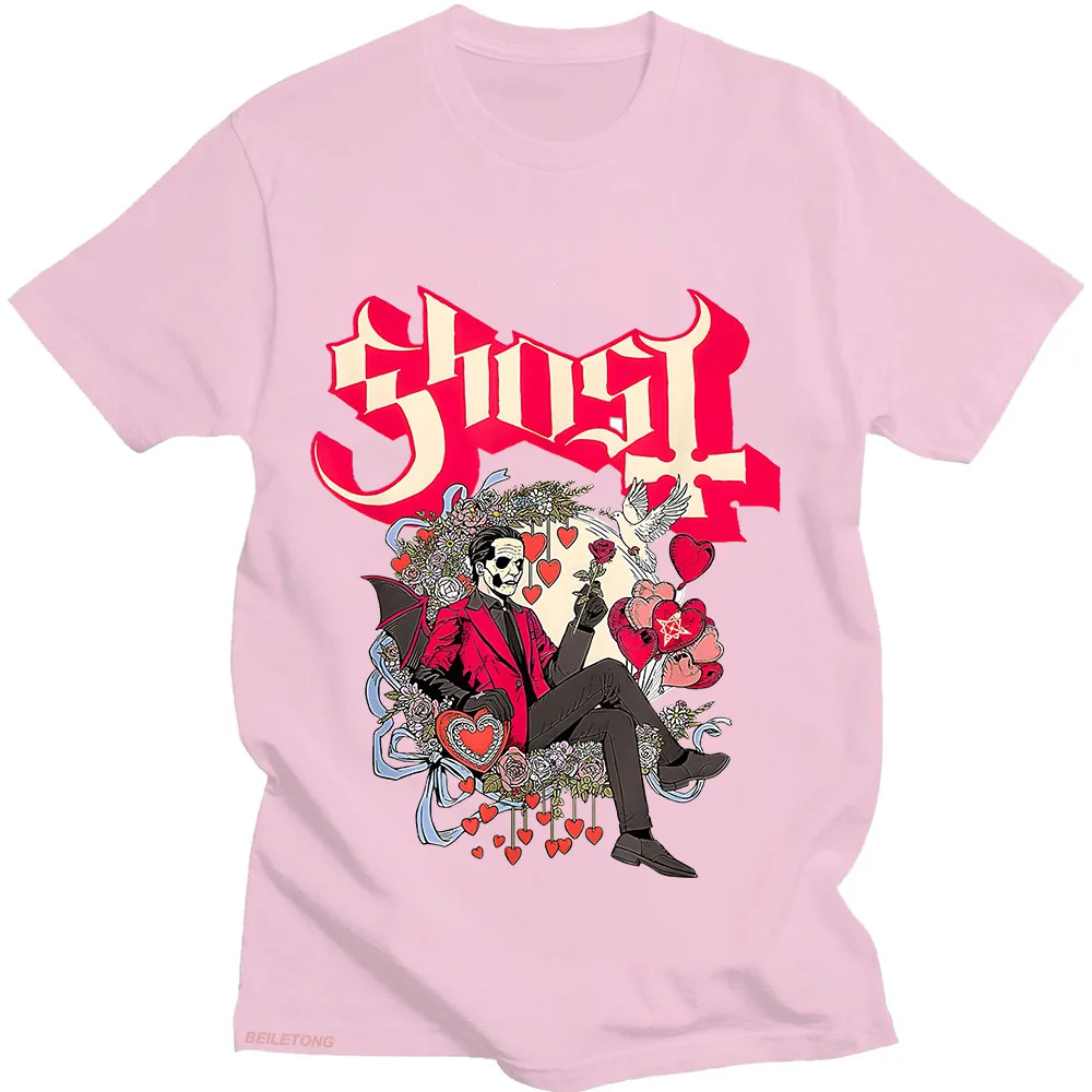 Show your devotion to the theatrical metal band Ghost with this exclusive T-shirt! Perfect for fans who embrace their eerie sound and iconic stage presence.