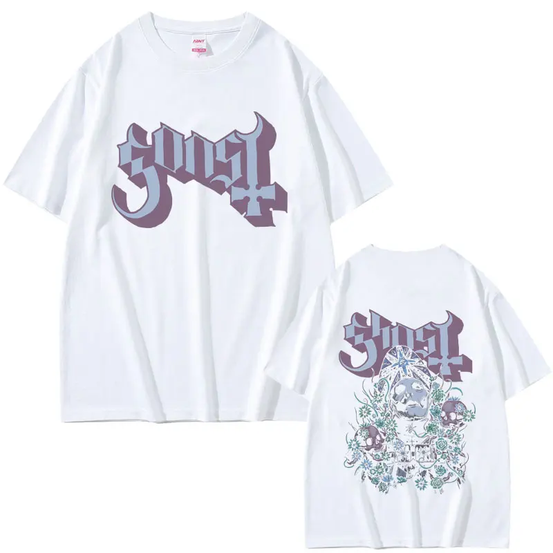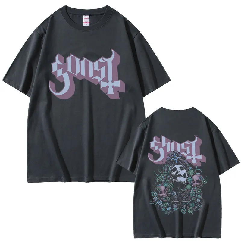 Step into the dark, atmospheric world of Ghost with this exclusive T-shirt! A must-have for fans who embrace their unique blend of heavy metal and theatrical performance.