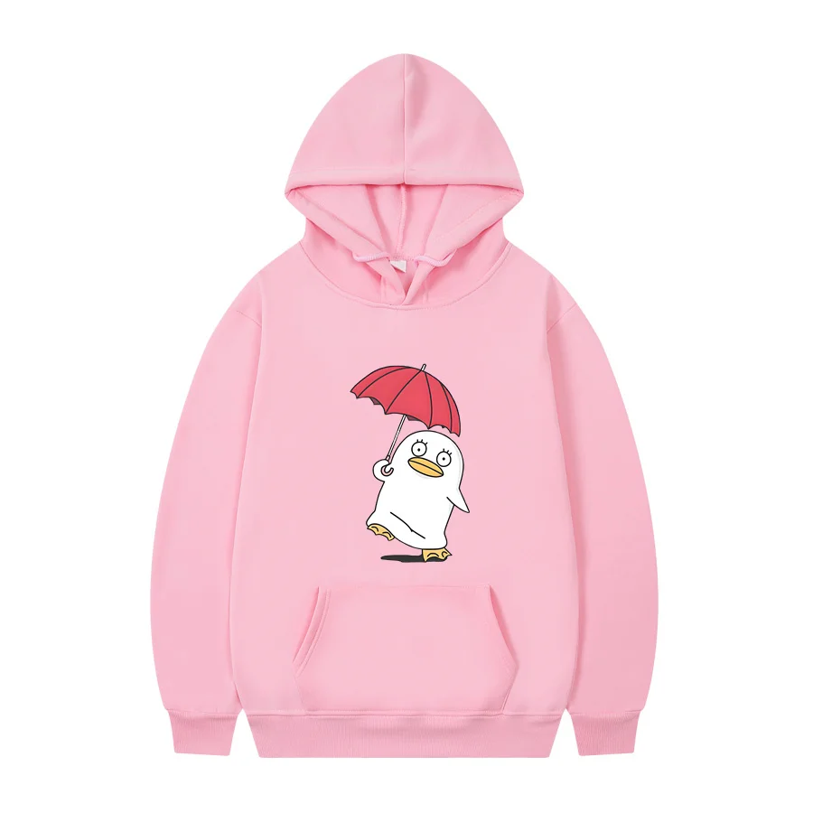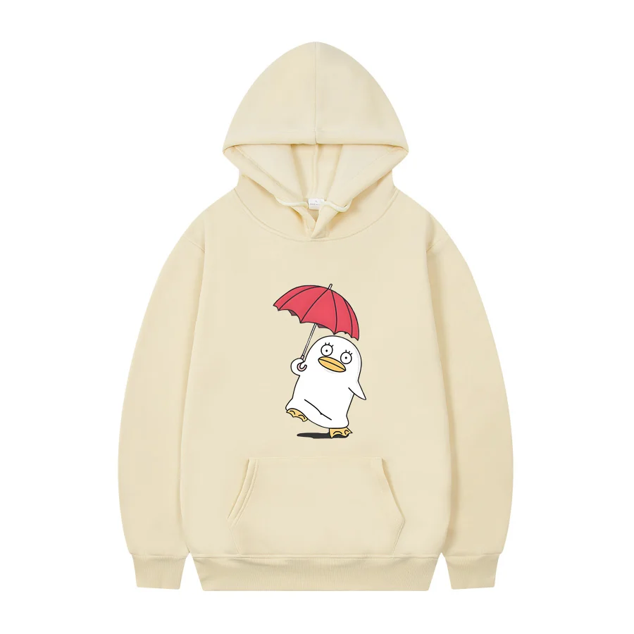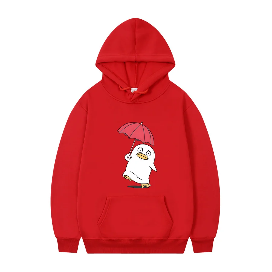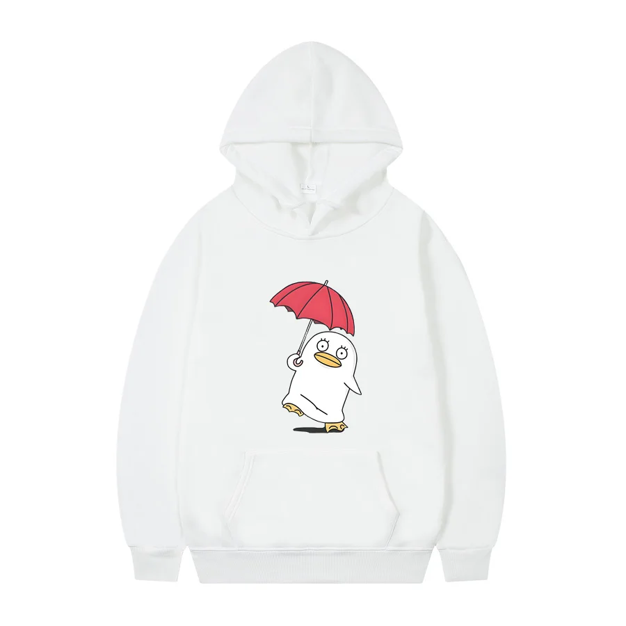 This Gintama hoodie features the beloved Sadaharu character rocking a cheerful vibe while holding a bright red umbrella against the classic black backdrop. The adorable penguin-like mascot is rendered in a clean, minimalist style that perfectly captures the show’s quirky charm and humor. Perfect for any Gintama fan who wants to rep one of anime’s most iconic supporting characters in cozy comfort.