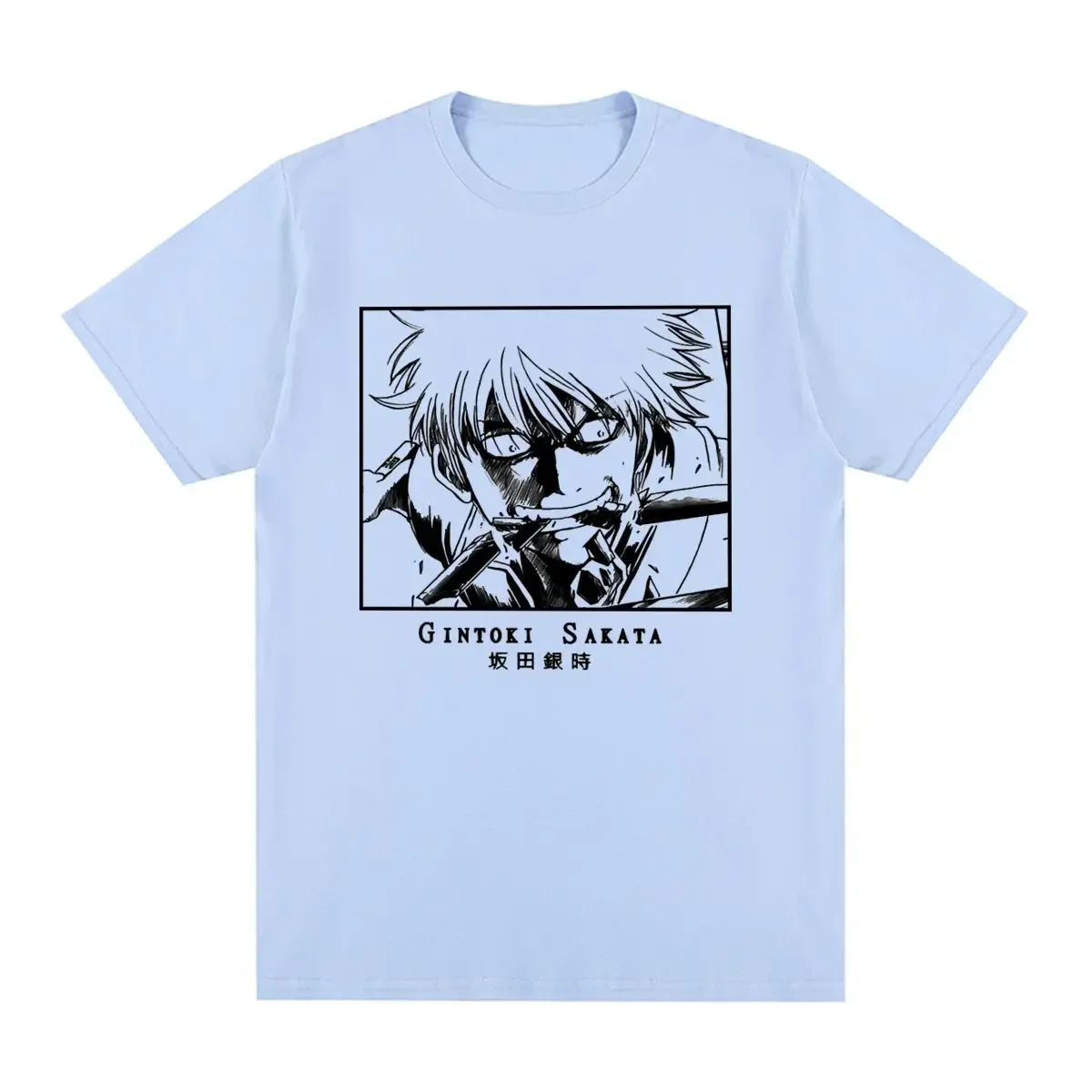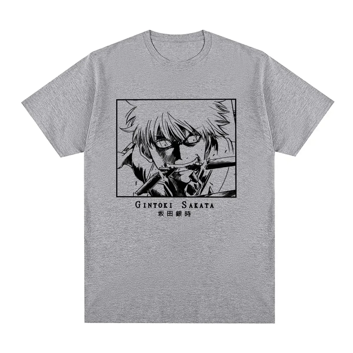 Gintoki Sakata takes center stage on this classic black and white manga-style tee that captures the silver-haired samurai’s iconic intensity. The striking line art print showcases Gintoki mid-action with his characteristic sharp eyes and determined expression, perfectly framed in a bold bordered panel. This is the perfect way to rep one of anime’s most beloved and hilarious characters on a clean white shirt that lets the detailed artwork shine.