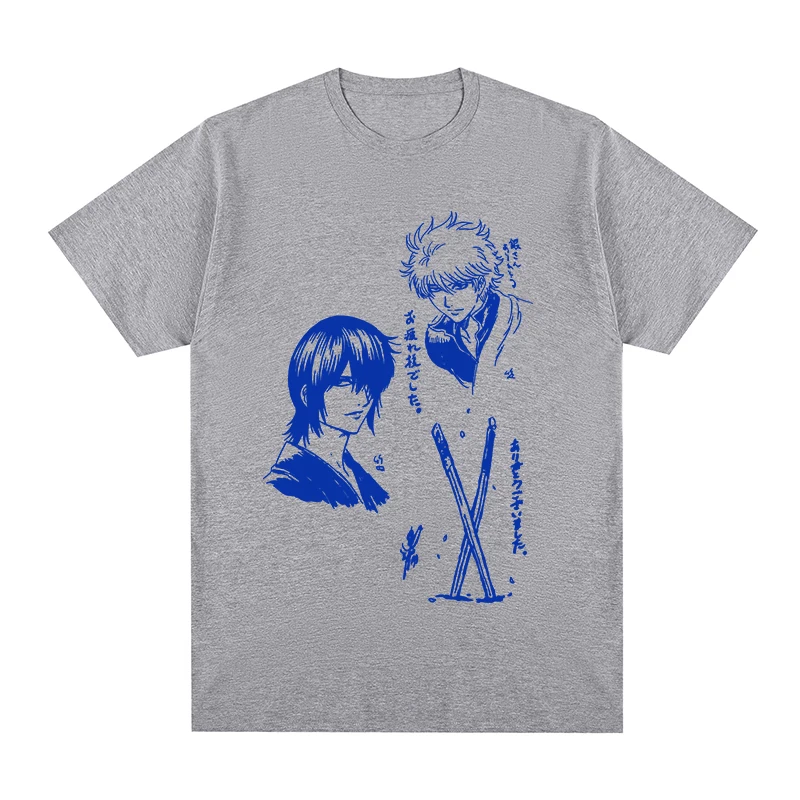 Show your love for the silver-haired legend with this stunning Gintama Sakata Gintoki Design T-Shirt! The shirt features iconic character portraits in striking blue ink on a crisp white background, capturing Gintoki’s wild spiky hair and cool demeanor alongside other beloved characters. With Japanese characters flowing across the design, this tee perfectly celebrates the humor and action that makes Gintama a fan favorite. It’s the perfect way to rep one of anime’s greatest comedies.