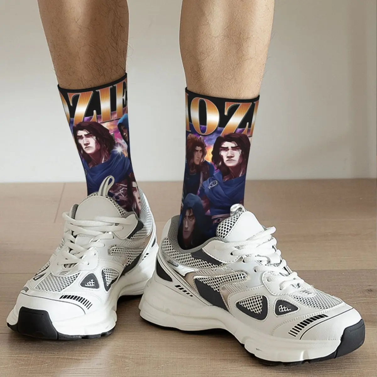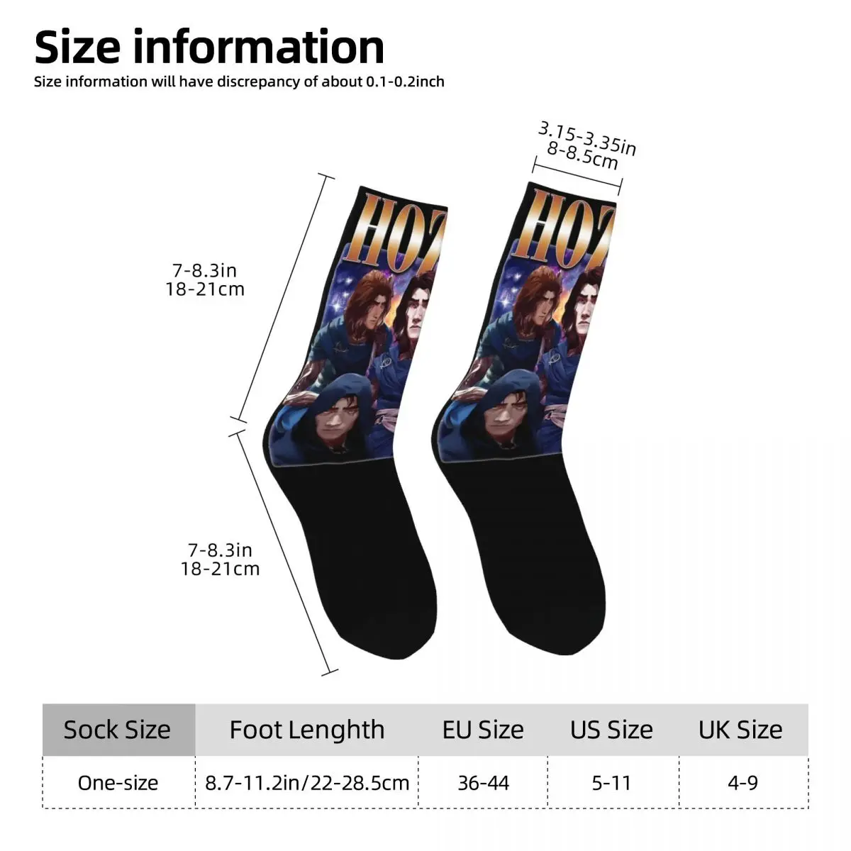 Step into pure Hozier vibes with these stunning socks that bring the artist’s moody aesthetic straight to your feet. The design features striking imagery of Hozier himself with that iconic golden text across the cuff, set against deep blues and purples that capture the essence of his atmospheric sound. Black crew socks with a vivid photo-printed upper section make these the perfect way to show your devotion to one of rock’s most captivating artists while keeping your feet cozy.