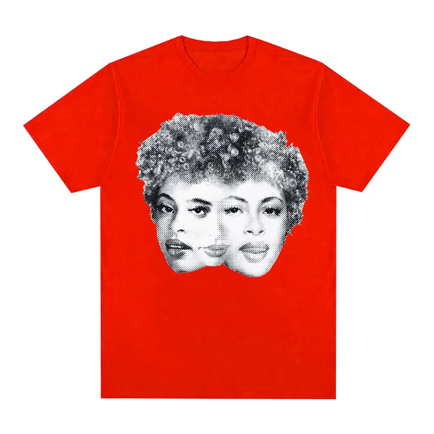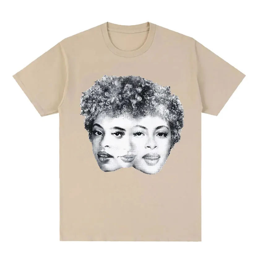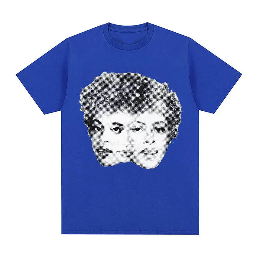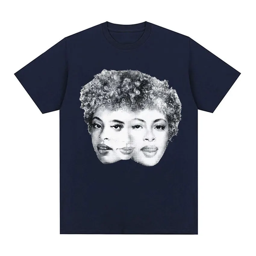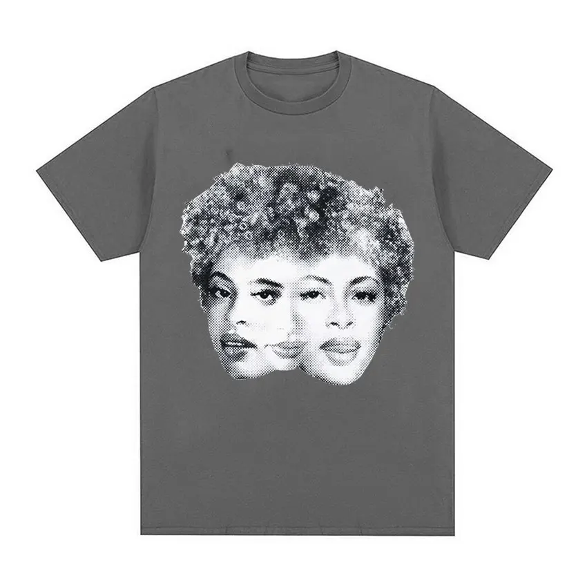 This Ice Spice Triple Face Retro Print T-shirt features a bold black tee with a striking halftone-style graphic of three versions of the artist’s face merged together in classic vintage newspaper print aesthetic. The monochromatic design has that iconic ’90s hip-hop energy, with the detailed dotted pattern giving it an authentic retro vibe that perfectly captures Ice Spice’s multifaceted artistry. It’s the kind of statement piece that any true fan would want to rock.