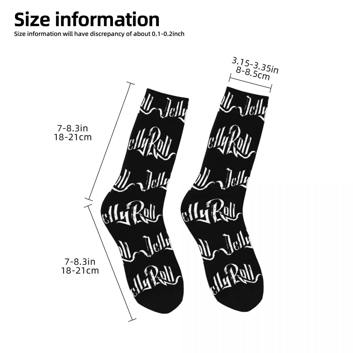 Rock your love for Jelly Roll with these bold artist name doodle socks that feature his name repeated in a striking metallic silver design against a sleek black background. The eye-catching lettering covers the entire sock in an all-over print pattern that’s perfect for any hip-hop fan looking to show their support in style. Whether you’re heading to a concert or just want to rep your favorite artist, these socks deliver that authentic fan energy with every step.