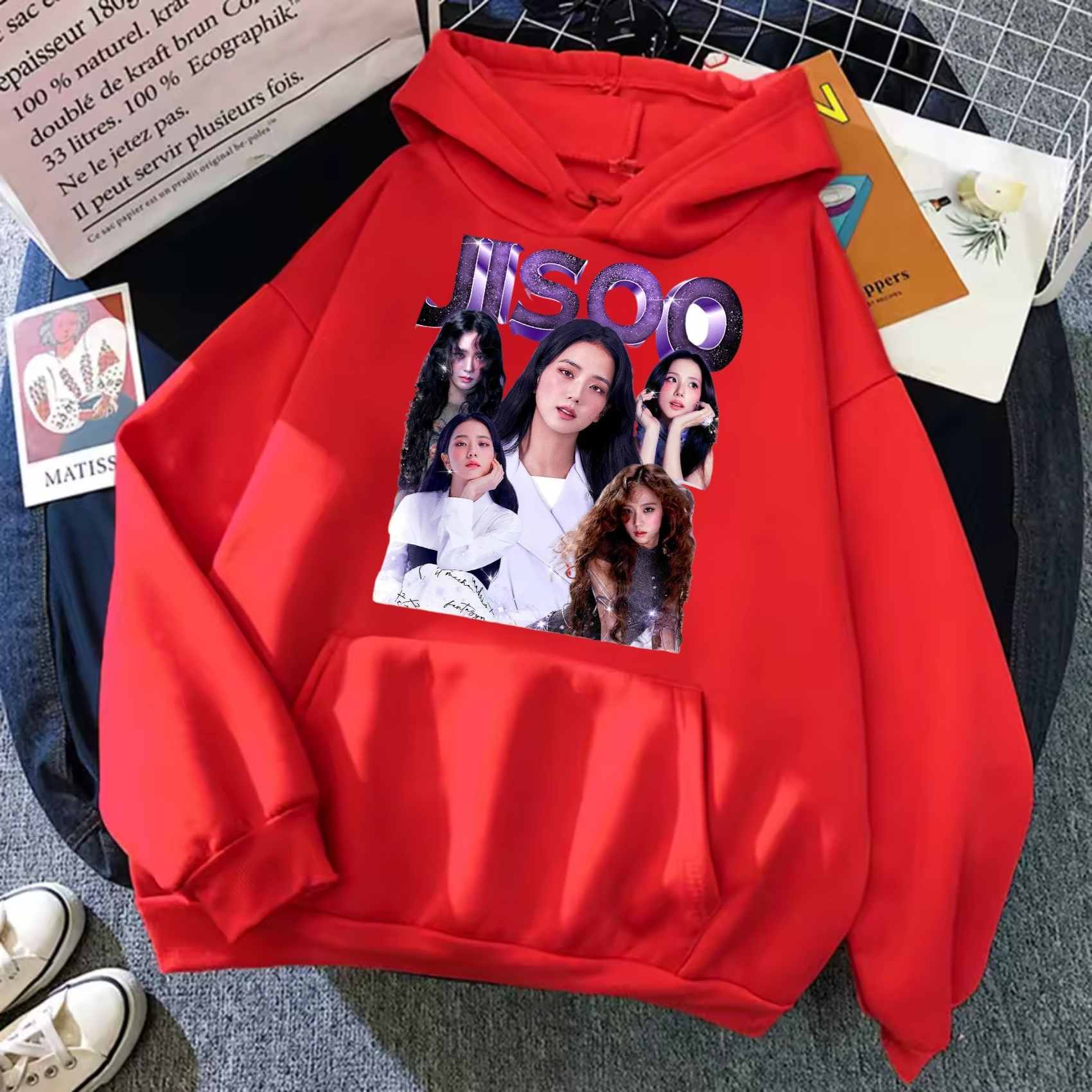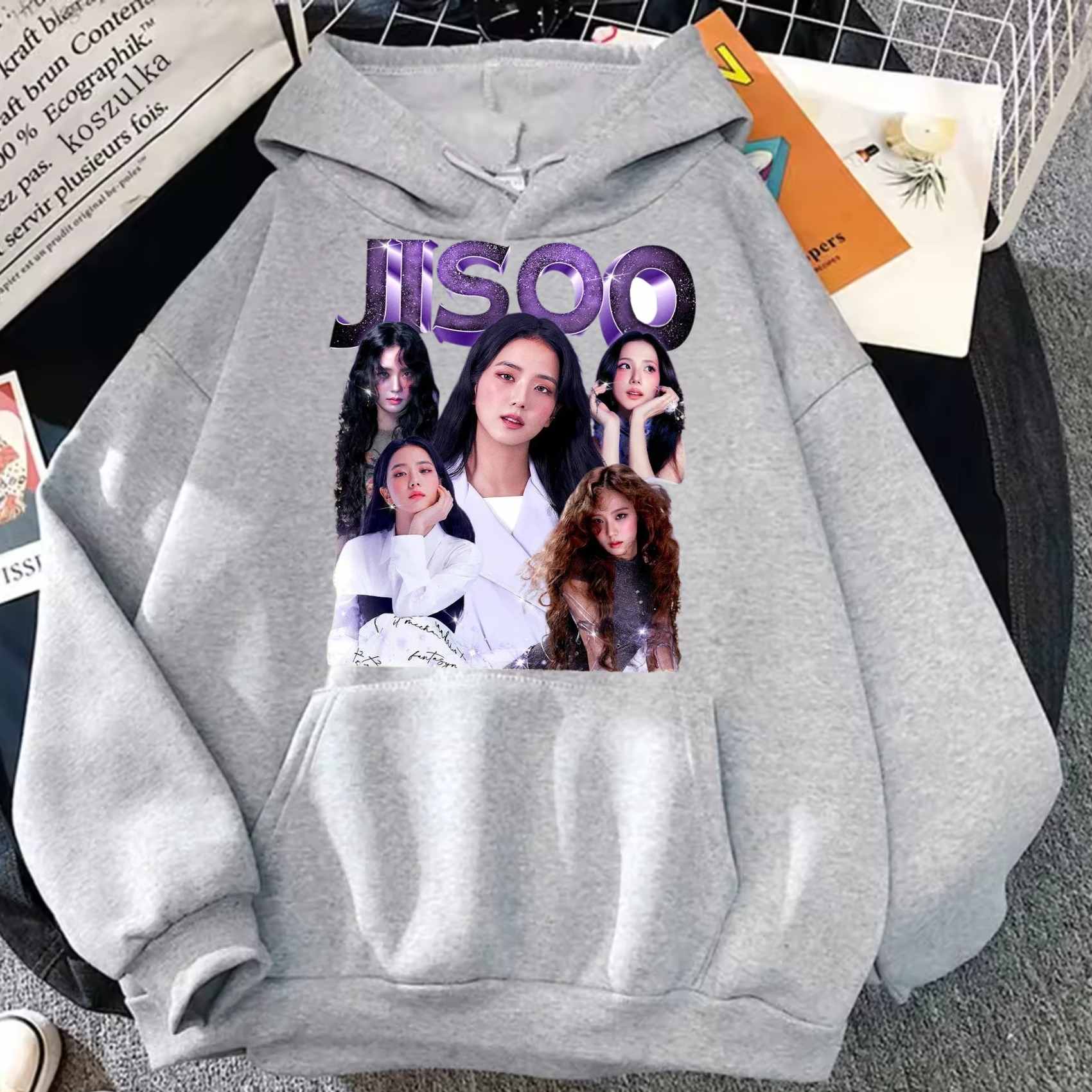 - Flower & Nature Themes: Jisoo frequently incorporates flowers and a natural, clean aesthetic into her personal style and merchandise. Hoodies may feature dainty floral embroidery, watercolor-style prints, or soft, natural color palettes (e.g., lilac, soft beige, white).