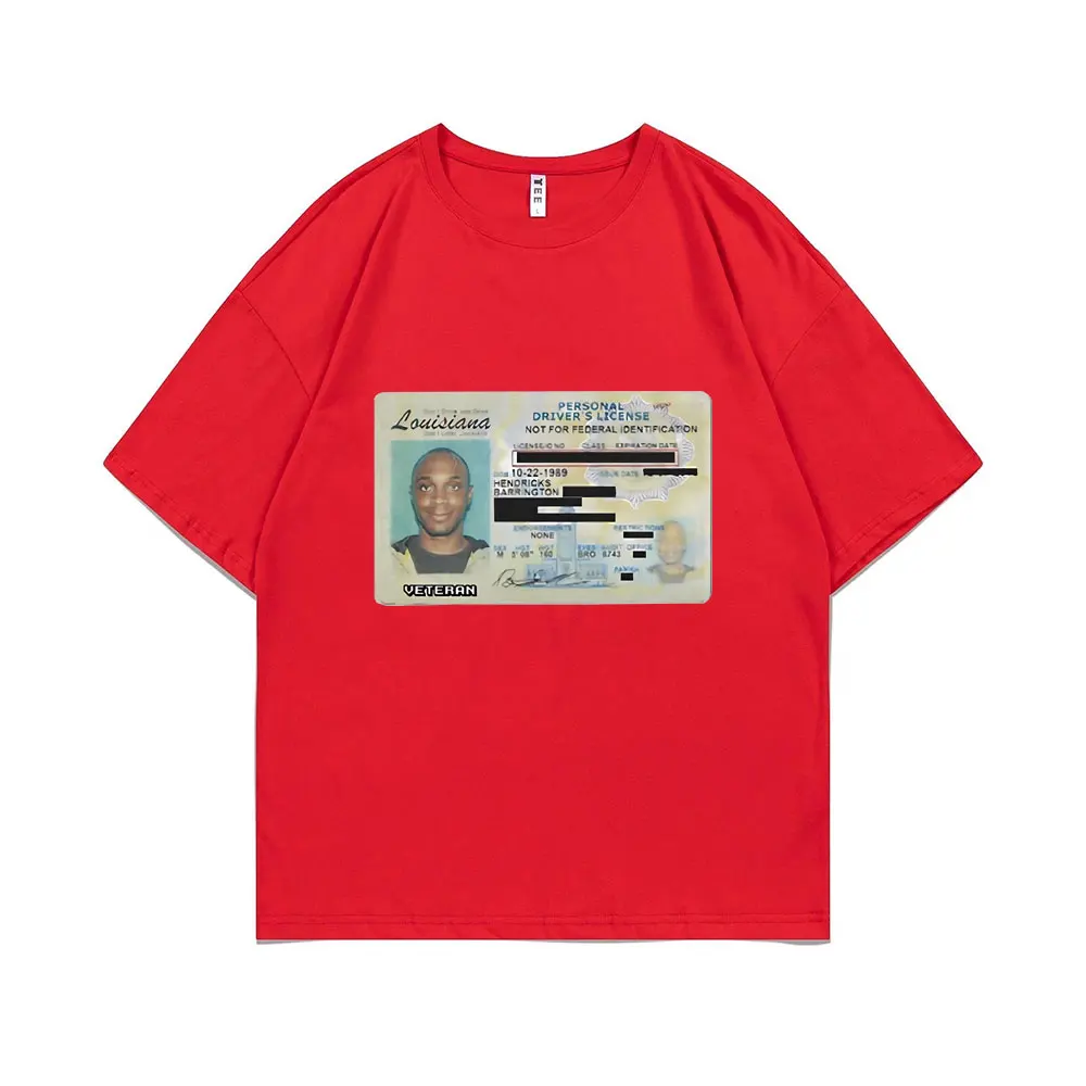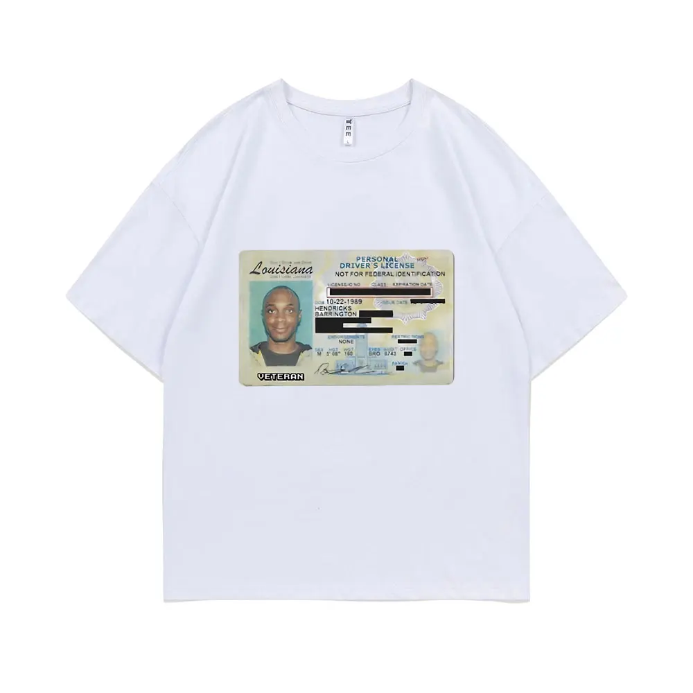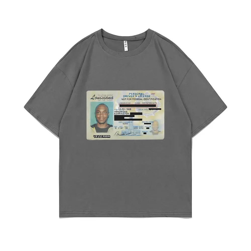 Rep JPEGMAFIA’s bold aesthetic with this striking ID Card Graphic Print T-shirt. The oversized black tee features a vintage Louisiana driver’s license design front and center, complete with photo and “VETERAN” designation across the bottom. It’s the kind of provocative, DIY-inspired visual that perfectly captures the experimental hip-hop artist’s uncompromising attitude. This is essential gear for fans who appreciate JPEGMAFIA’s boundary-pushing sound and unapologetic visual identity.