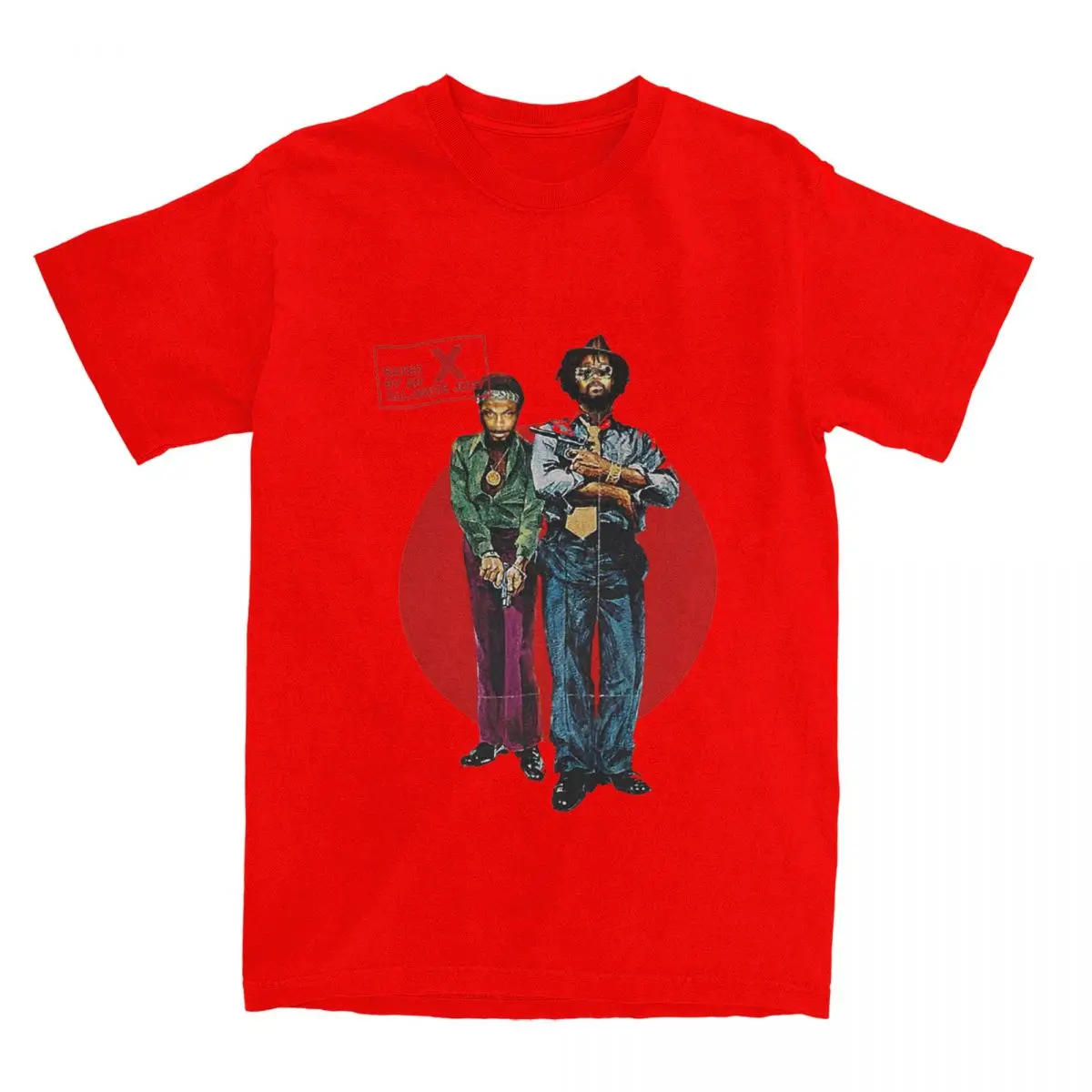 Rock this iconic JPEGMAFIA tee featuring the bold “Scaring The Hoes” artwork on a classic black shirt. The design showcases two figures in vibrant detail against a striking red circle backdrop, with the infamous “Rated X by an All-White America” stamp at the top. This is the perfect statement piece for fans of experimental hip-hop and underground rap culture.