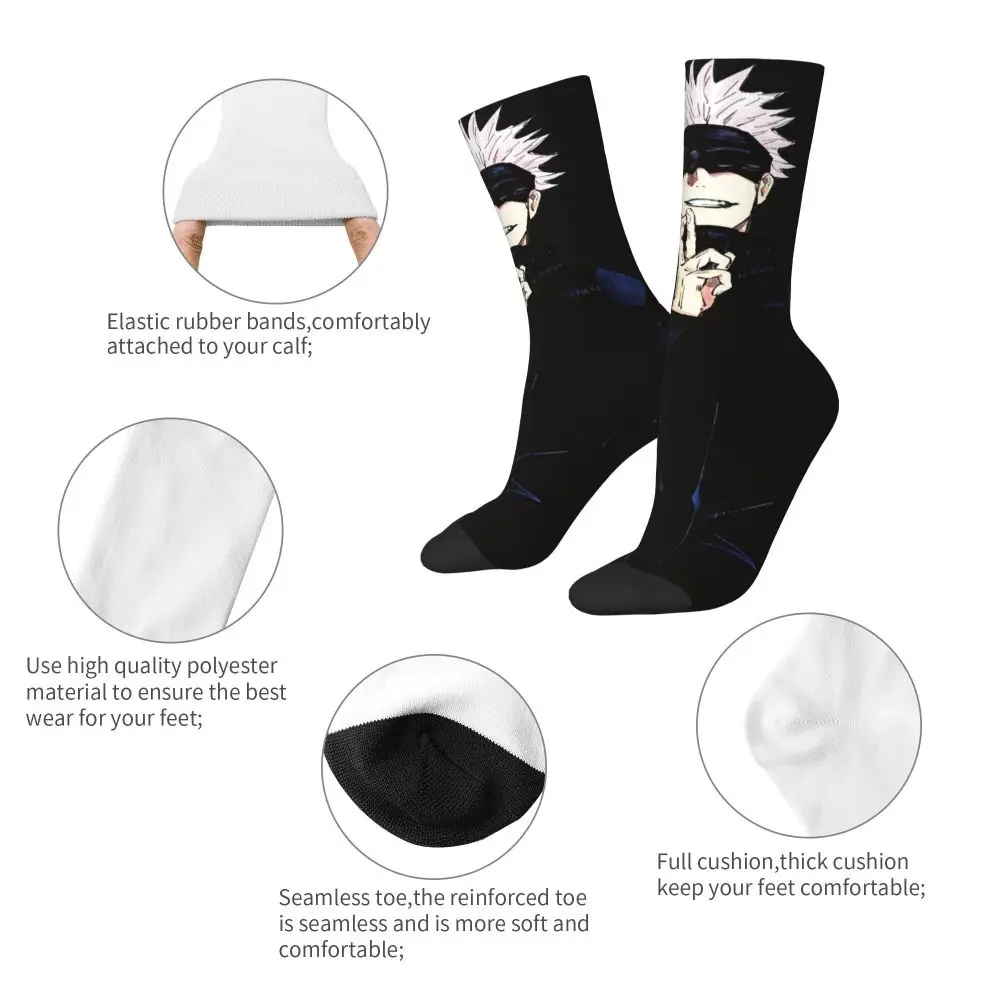 - Eye-Catching Design: Featuring bold graphics inspired by the characters and themes of Jujutsu Kaisen, these socks are sure to make a statement.