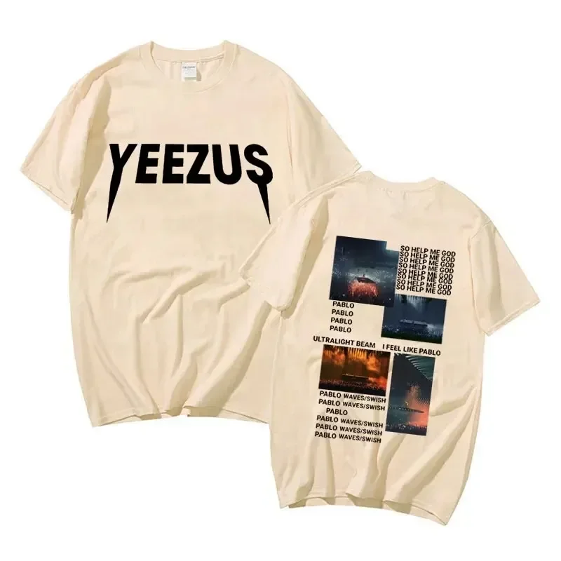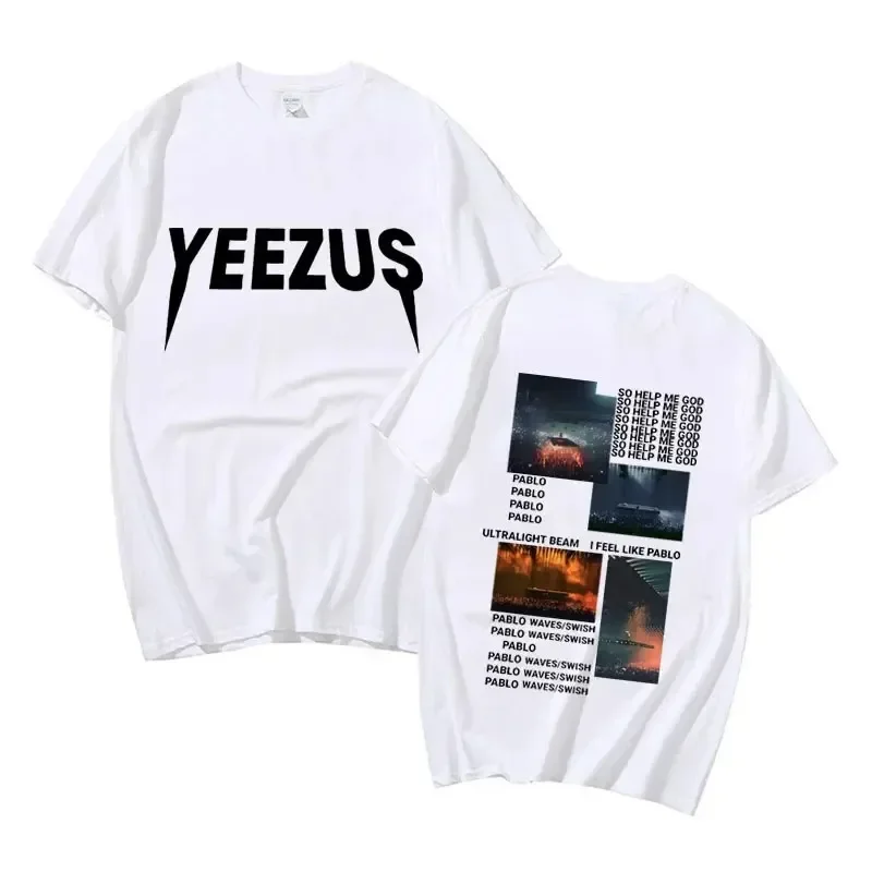 This Kanye West So Help Me God t-shirt is an essential piece for any fan of the rap icon. The front features the bold ‘YEEZUS’ text in stark white against jet black, while the back showcases an intricate album artwork collage with track listings and atmospheric imagery. It’s the perfect way to rep one of hip-hop’s most influential projects with understated yet unmistakable style.
