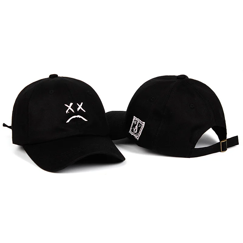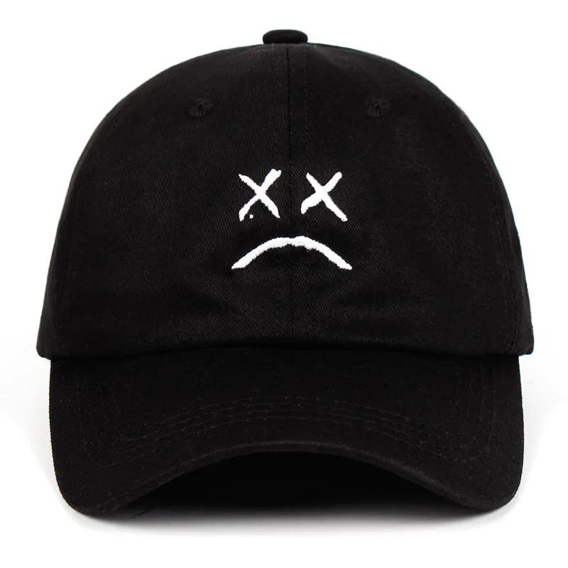 Rock the iconic sad face design that defined Lil Peep’s aesthetic with this black knitted cap. The signature X-eyes and downturned mouth are embroidered in crisp white across the front, perfectly capturing the emotional vibe of the late rapper’s legacy. This classic dad-hat silhouette features a small woven patch on the side, making it the perfect way to show your love for Peep’s music and cultural impact.