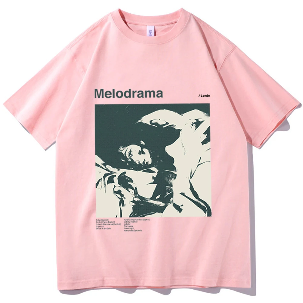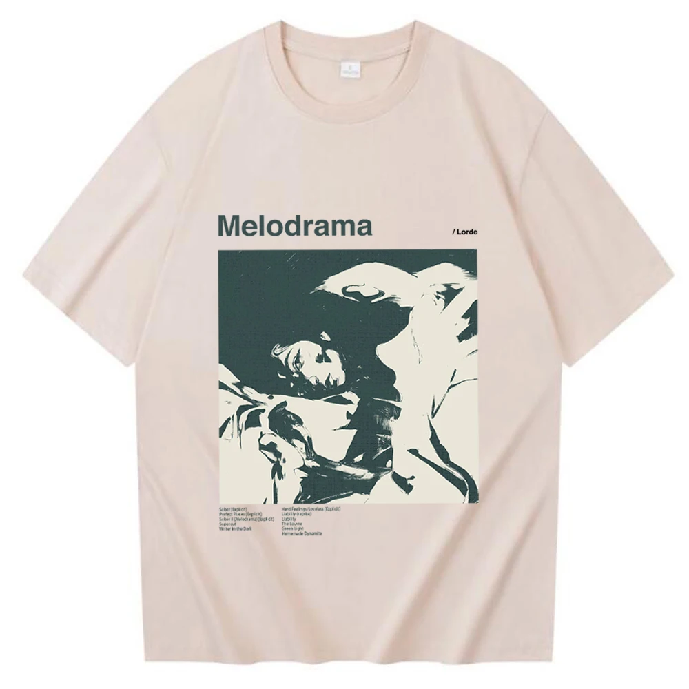 This Lorde Melodrama t-shirt captures the haunting aesthetic of her iconic album with a striking monochromatic design. The classic gray tee features a bold black and cream portrait image that’s instantly recognizable to fans of the album, complemented by the “Melodrama” text and the “/Lorde” credit. It’s the perfect way to show your appreciation for one of pop’s most visually distinctive albums while rocking a timeless, understated look.