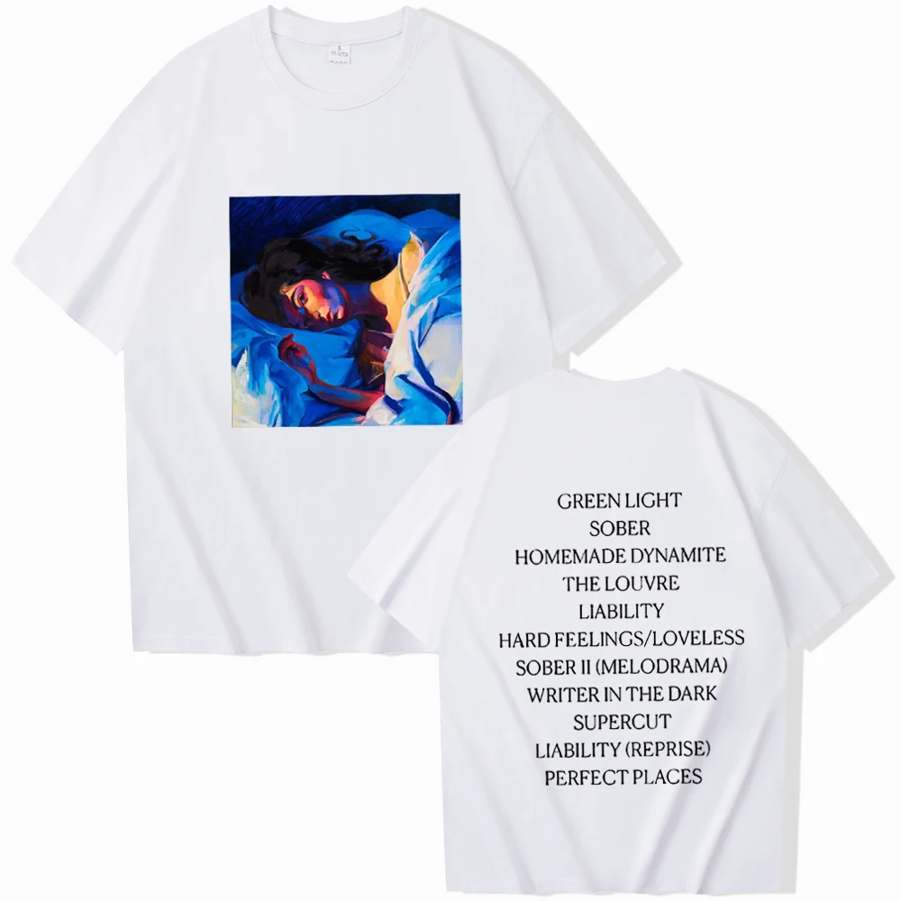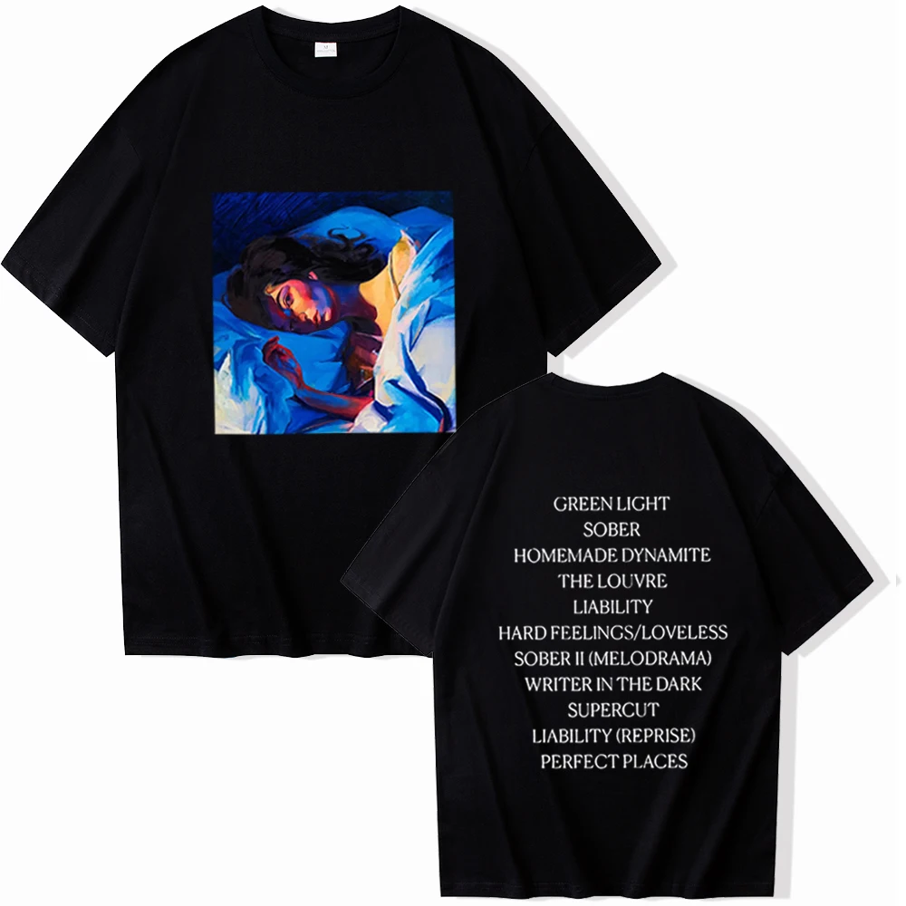 This stunning Lorde Pure Heroine t-shirt features the iconic album artwork on the front—a mesmerizing blue and gold portrait that captures the essence of the era. The back displays the complete tracklist from the album, making it the ultimate collector’s piece for devoted fans. The oversized black tee is perfect for everyday wear while celebrating one of pop’s most influential debuts.