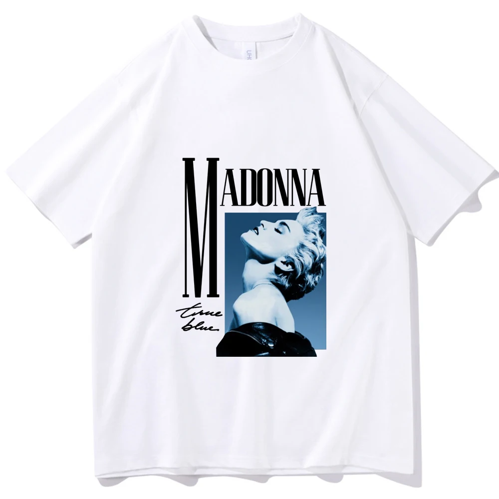 Celebrate the iconic pop legend with this stunning Madonna True Blue tee! The classic black shirt features a bold portrait of Madonna with her signature ’80s look, complete with the iconic True Blue album artwork aesthetic. This is the perfect piece for devoted fans of the Material Girl and her legendary career spanning decades of chart-topping hits.
