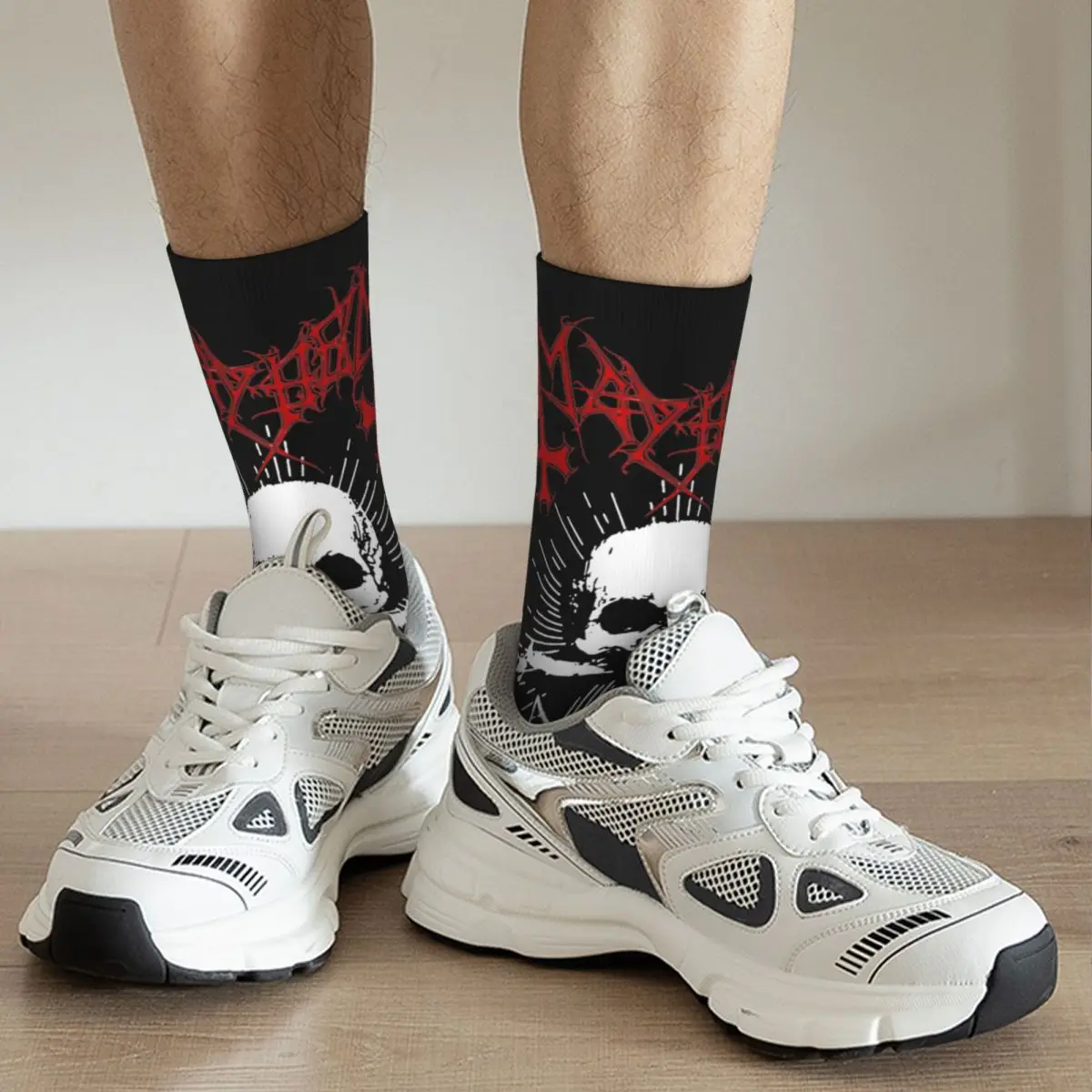 Step into the dark world of Mayhem with these stylish socks—an essential accessory for every devoted fan!