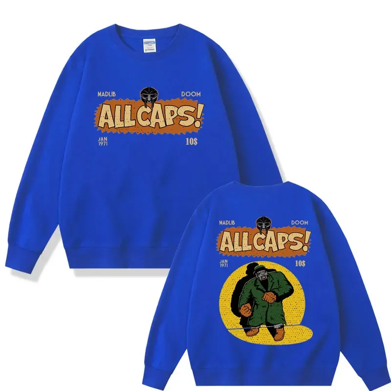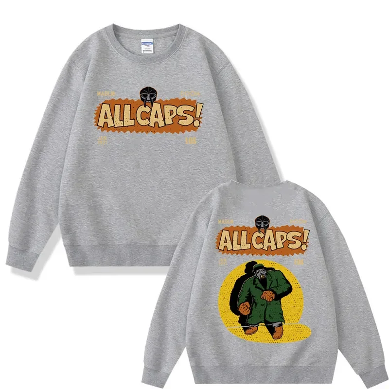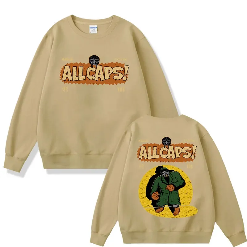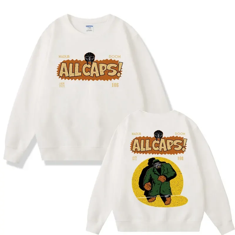 The Mf Doom – All Caps Graphic Print Sweatshirt from Waerin is made for dedicated Mf Doom fans who want to wear their passion every day.