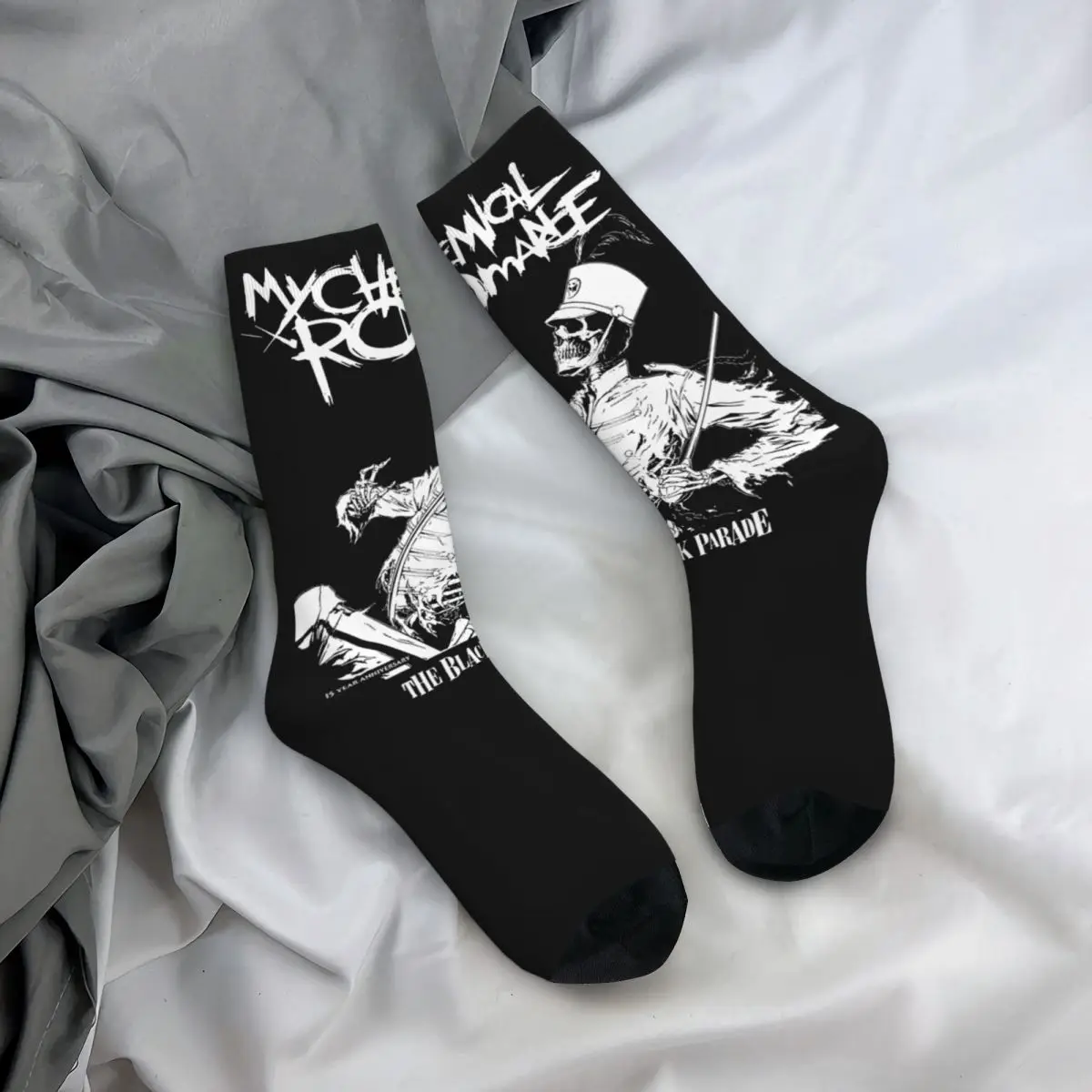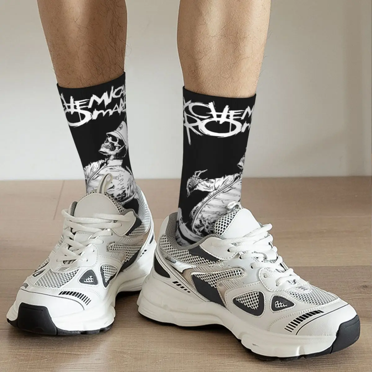 Rock your MCR fandom with these epic My Chemical Romance socks featuring the haunting Black Parade artwork. The striking black and white design showcases skeletal figures in top hats, perfectly capturing the theatrical energy of the band’s iconic era. These bold statement socks are a must-have for any true fan who wants to display their devotion from the ground up.