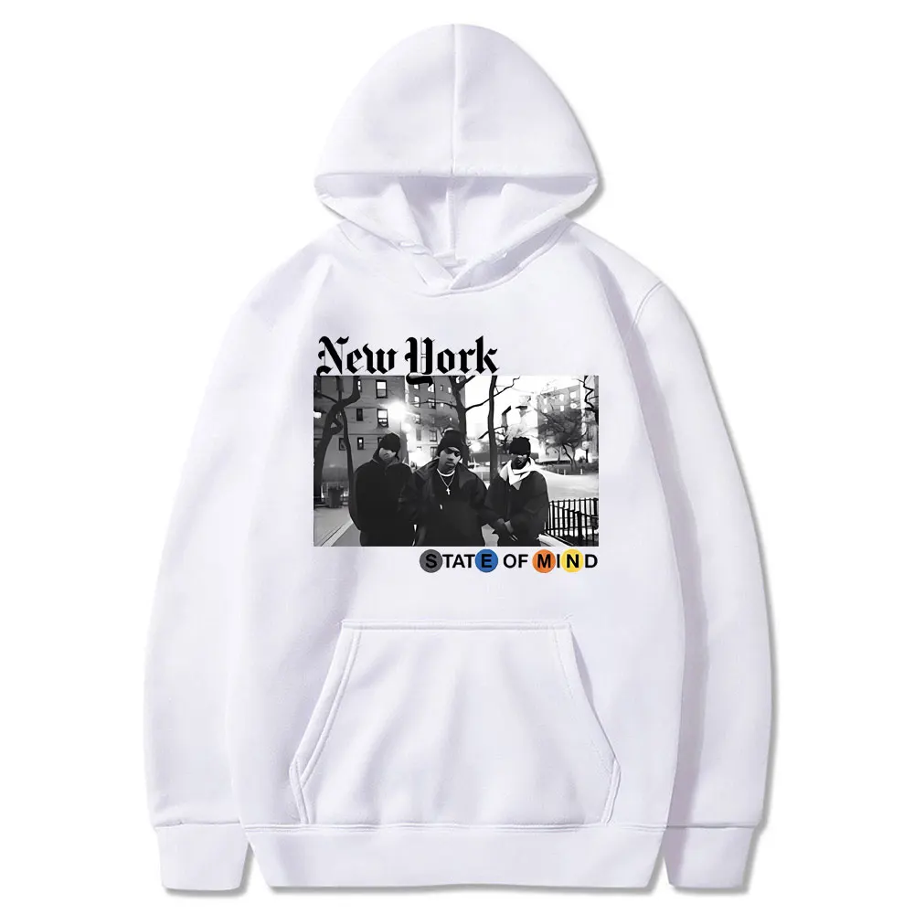 The Nas – State Of Mind Graphic Print Hoodie from Waerin is made for dedicated Nas fans who want to wear their passion every day.