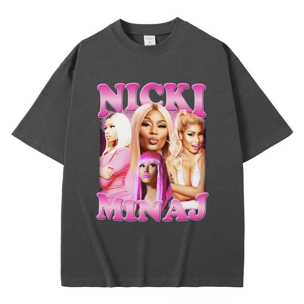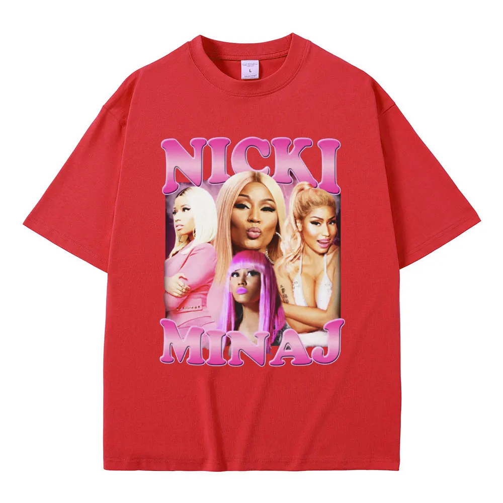 Rock this iconic Nicki Minaj Pink Graphic Design T-Shirt featuring the rap queen herself in stunning pink and purple tones. The bold, oversized “NICKI MINAJ” text frames multiple stunning shots of the legend, creating that perfect vintage hip-hop aesthetic on a classic black tee. Whether you’re a die-hard Barb or just love statement pieces, this graphic tee captures Nicki’s fierce energy and undeniable presence in pure style.