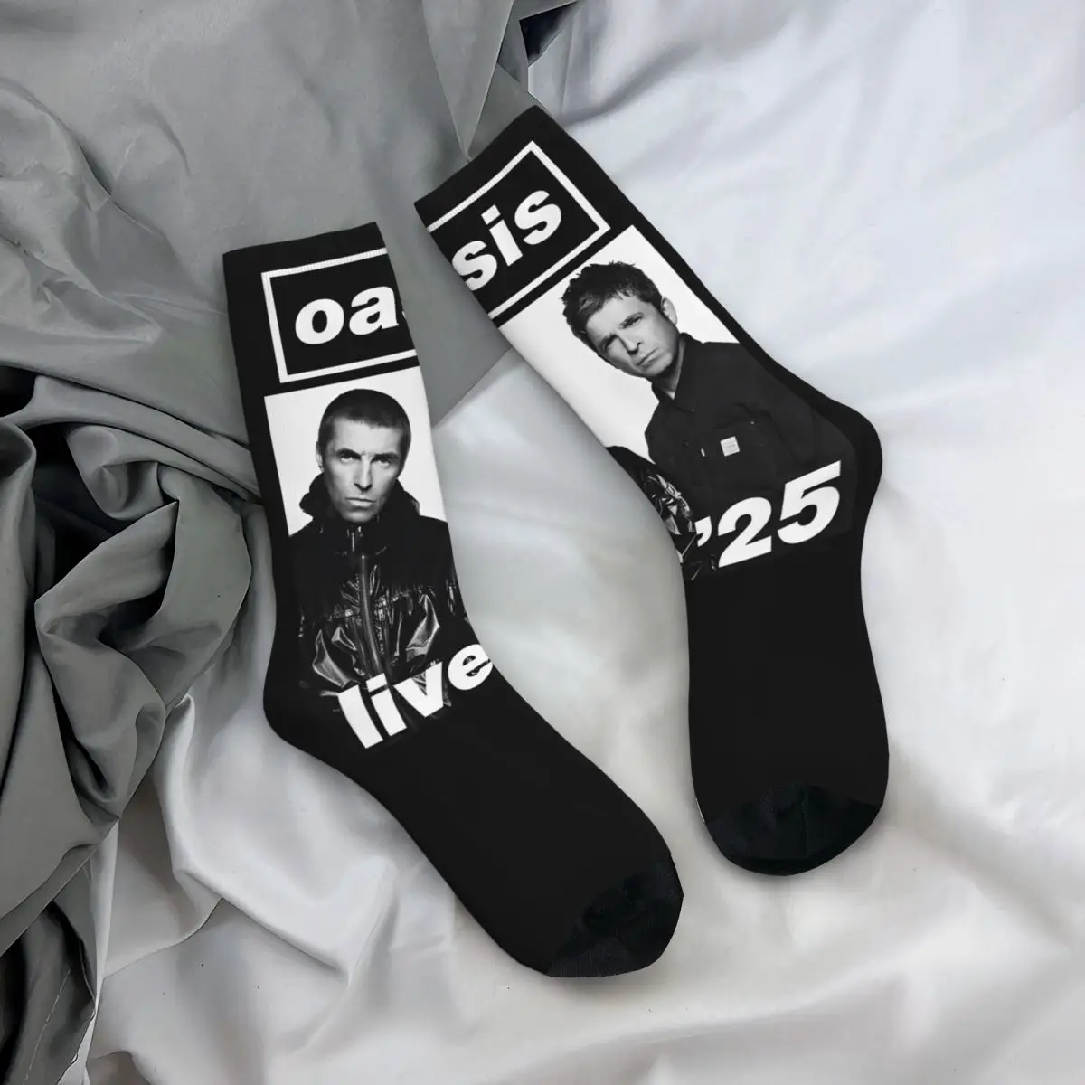 Rock your Oasis fandom with these iconic Fan Tour Essential Printed Socks featuring the legendary band members in striking black and white photography. The bold ’25’ numerals and ‘SIS’ branding make these socks an instant conversation starter for any devoted fan. Perfect for showing your love for one of the most influential bands of all time, these socks deliver that authentic band merchandise vibe straight to your feet.