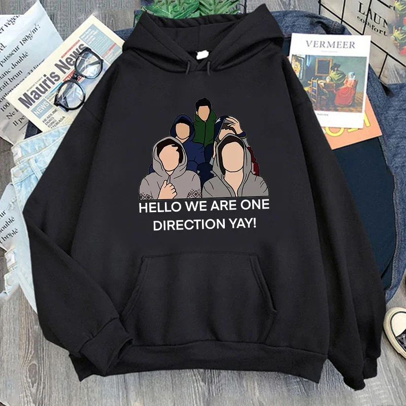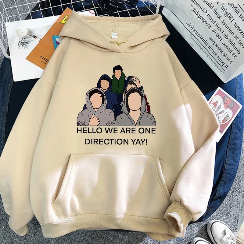 Embrace your love for One Direction with the Hello We Are One Graphic Hoodie! Perfect for fans who want to showcase their passion for the band.