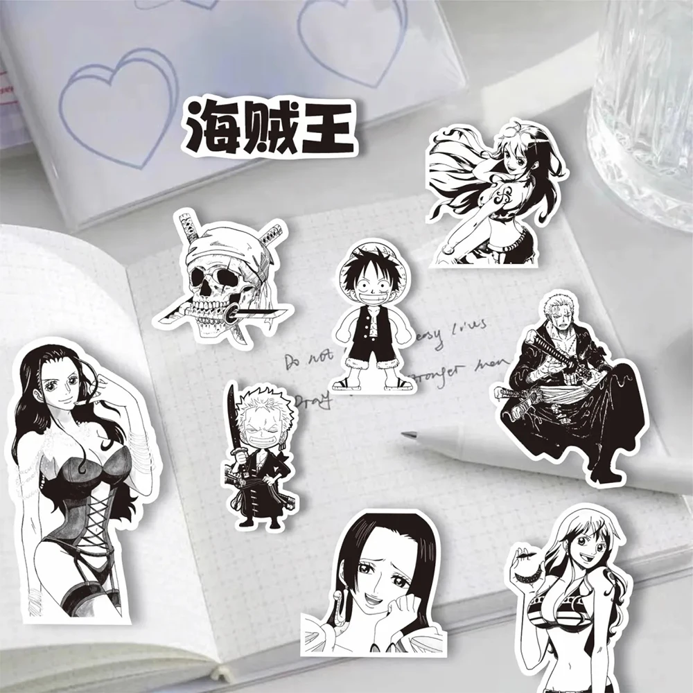 One Piece – 50/30/10 PCS Black & White Stickers: Choose Your Style!