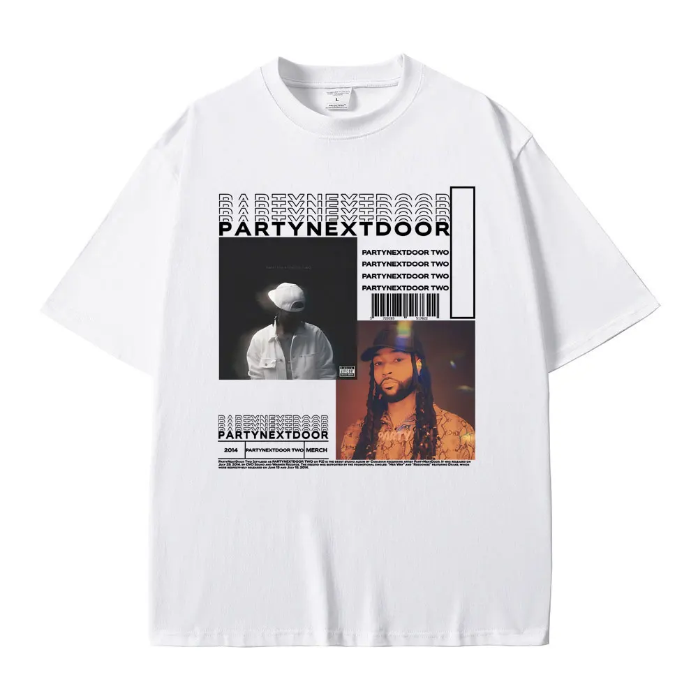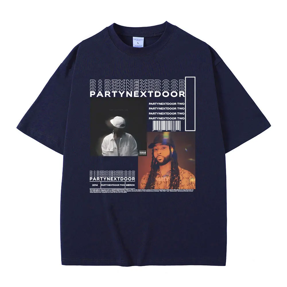 This PARTYNEXTDOOR PartyNextDoor Two album tee is the ultimate fan piece for OVO sound enthusiasts. The black shirt features a striking collage design with album artwork, artist portraits, and bold typographic elements that celebrate the project’s iconic aesthetic. Wear your appreciation for the Toronto hip-hop legend with this instantly recognizable merch that captures the vibe of one of the most influential projects in modern R&B and rap.