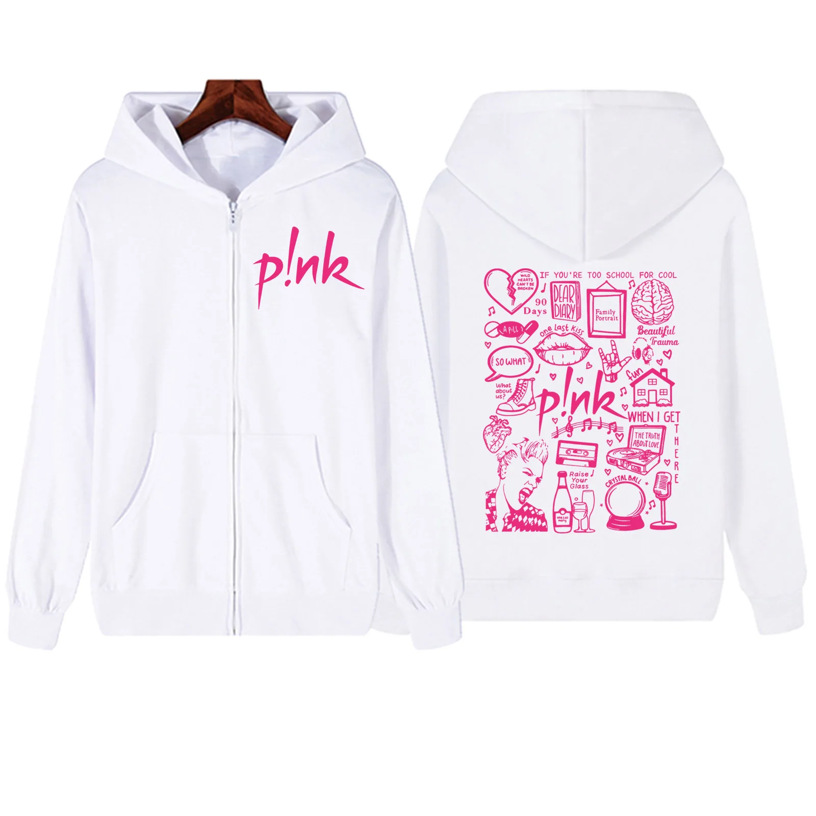 The Pink – Doodle Print Zip Up Hoodie from Waerin is made for dedicated Pink fans who want to wear their passion every day.