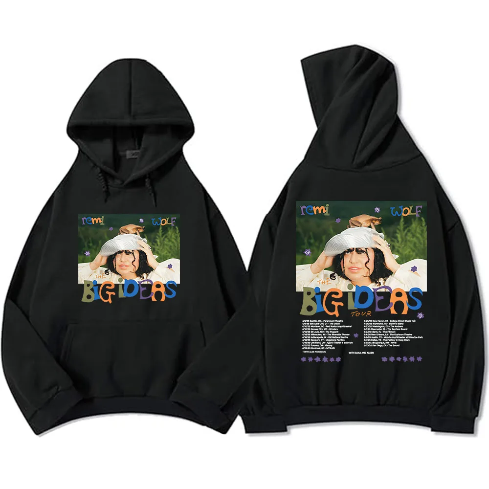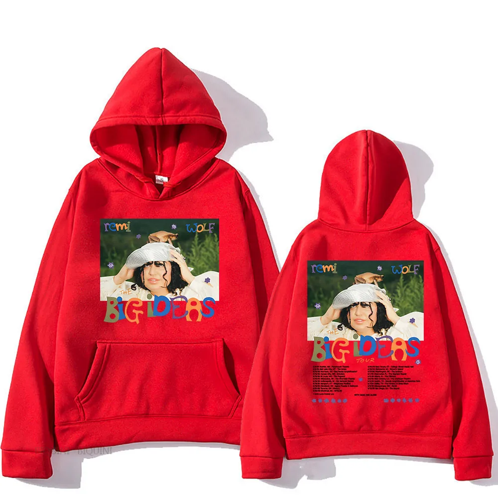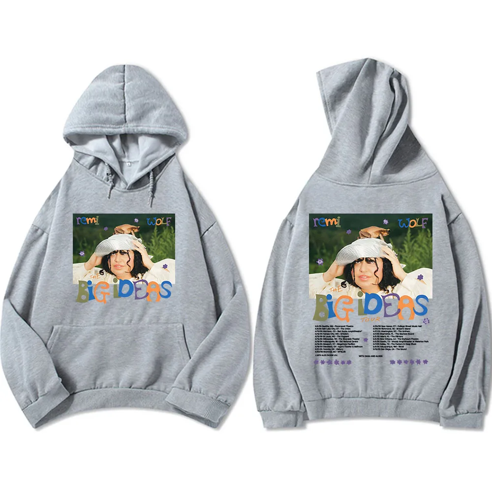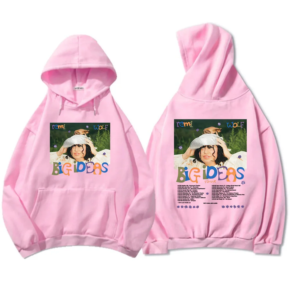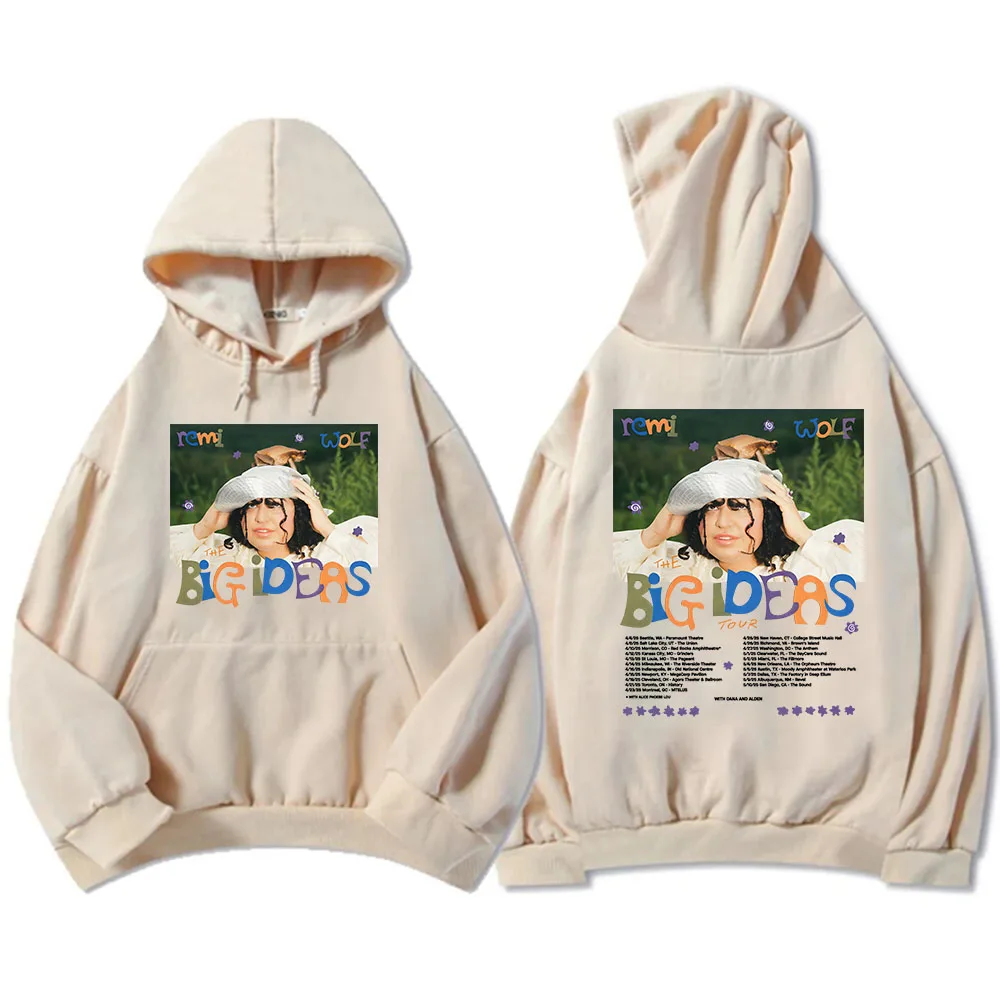 Rock the iconic Big Ideas Tour look with this stunning Remi Wolf hoodie! Featuring the vibrant album artwork on the front with that unforgettable playful energy, plus the complete tour dates on the back, this white hoodie is a must-have for any Remi Wolf fan. The colorful Big Ideas design pops beautifully against the crisp white fabric, making it the perfect piece to rep one of pop’s most creative and exciting artists.