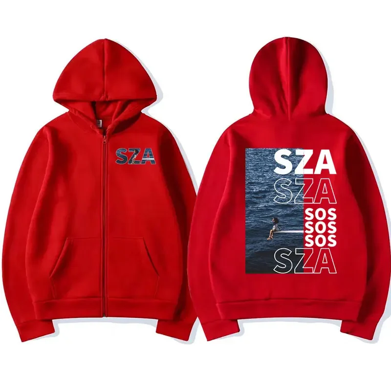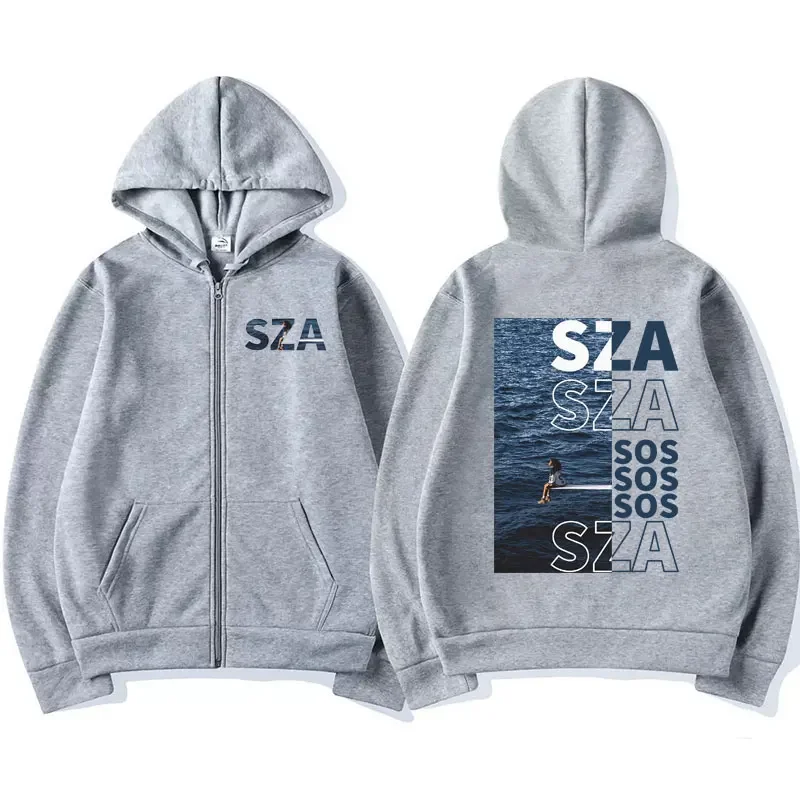 The SZA – S.O.S Album Graphic Print Zip Up Hoodie from Waerin is made for dedicated SZA fans who want to wear their passion every day.