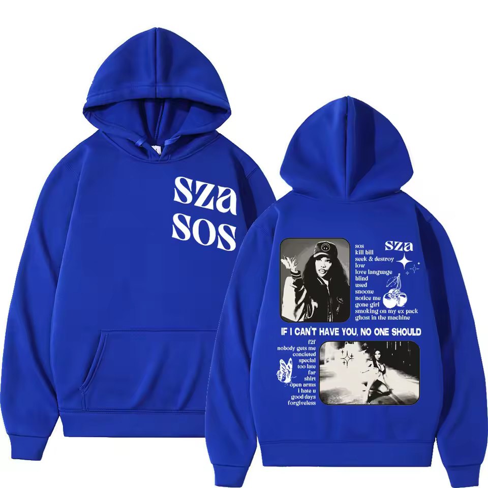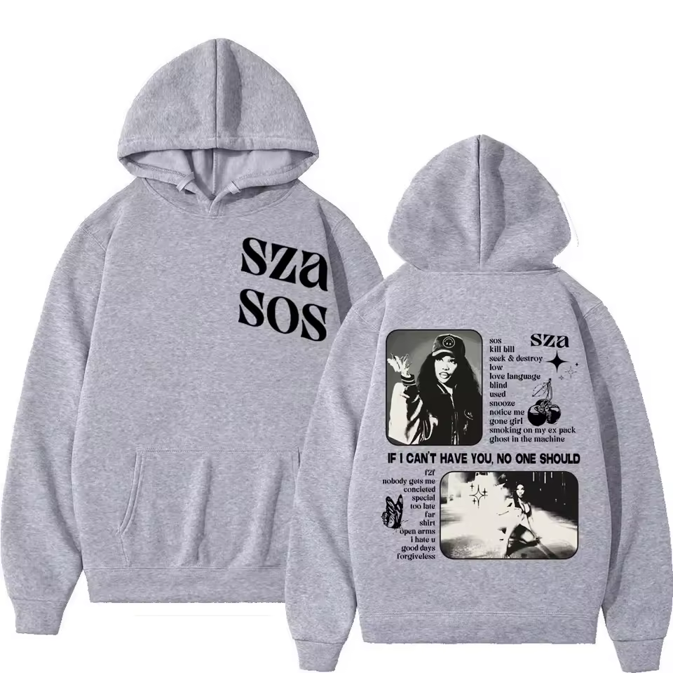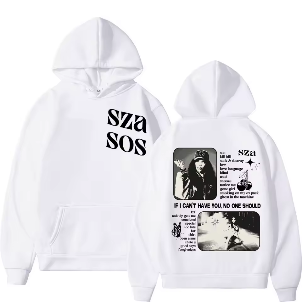 The SZA – SOS Double Sided Album Print Hoodie from Waerin is made for dedicated SZA fans who want to wear their passion every day.