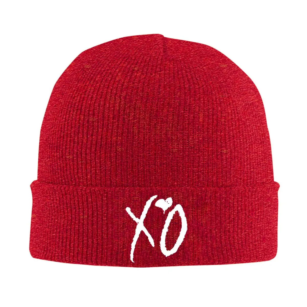 The Weeknd – White XO Knitted Print Beanie: Stylish and Cozy
